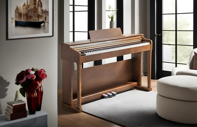 Стильный дизайн инструмента прекрасно сочетается с любым интерьером, будь то домашняя студия или концертный зал. Модель доступна в трёх цветовых исполнениях: дерево, белом и черном, что позволяет подобрать инструмент, который соответствует вашим предпочтениям. Корпус выполнен из высококачественных материалов, что обеспечивает инструменту долговечность и устойчивость к повреждениям.