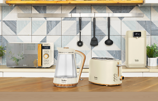 В комплект INGRID входит вспениватель молока Tesler MF-240 BEIGE, который поможет вам приготовить идеальную пенку для капучино. Микроволновая печь Tesler INGRID ME-2044 BEIGE c зеркальной дверцей и декором "под дерево" быстро разогреет ваши блюда. Чайник с корпусом из стекла Tesler INGRID KT-1750 BEIGE и чайник из нержавеющей стали Tesler INGRID KT-1740 BEIGE быстро разогревают воду благодаря своей высокой мощности. Оба чайника выполнены из высококачественных материалов, и дополнены декоративными вставками с покрытием Soft touch. Приготовить вкусные тосты на любой вкус помогут Tesler INGRID TT-240 BEIGE на два слота, и Tesler INGRID TT-140 BEIGE с одним широким слотом. Термопот Tesler INGRID TP-5000 BEIGE позволяет выбрать один из пяти температурных режимов, и сохраняет воду горячей на протяжении всего дня.