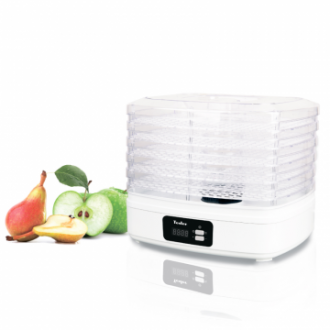 Сушилка для овощей и фруктов TESLER снабжена пятью пластиковыми регулируемыми по высоте поддонами и вентилятором,...
