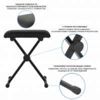 Правильная посадка исполнителя за инструментом важна во время продолжительного музицирования, практики и обучения игре на фортепиано. Стул для пианино Tesler B01 обеспечит комфорт при занятиях музыкой, и одинаково хорошо подойдёт для использования взрослыми людьми, так и детьми.