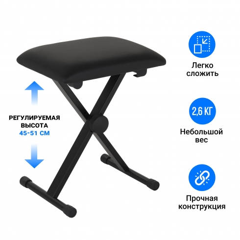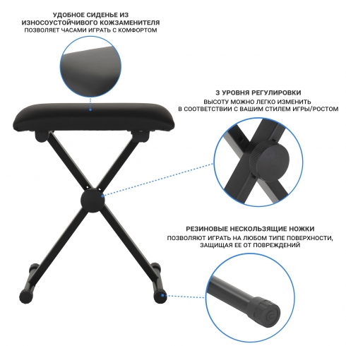 Отрегулируйте высоту до желаемого уровня, и наслаждайтесь игрой на пианино, сделав свои занятия дольше и продуктивнее.