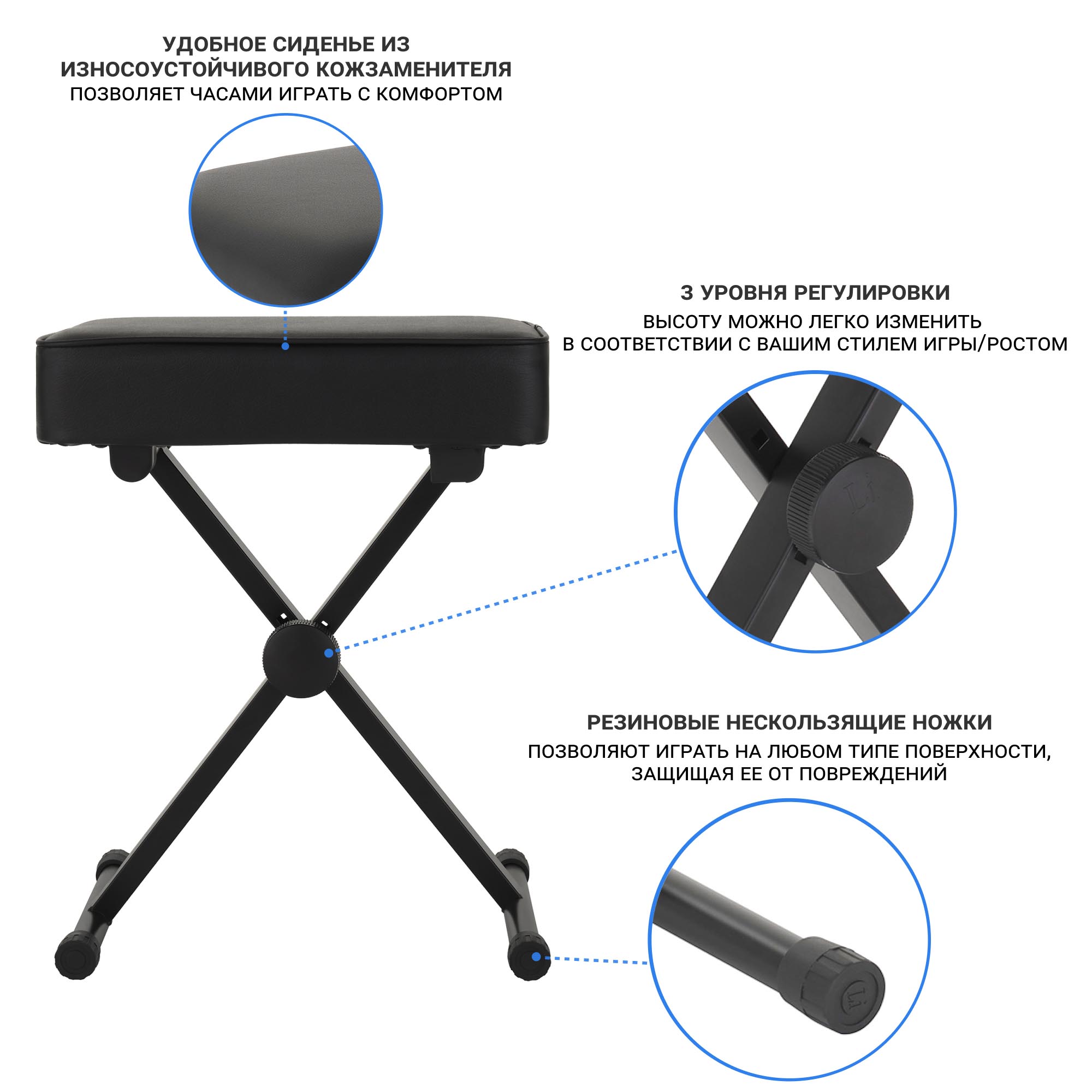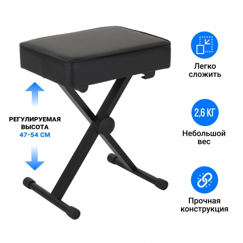 Отрегулируйте высоту до желаемого уровня, и наслаждайтесь игрой на пианино, сделав свои занятия дольше и продуктивнее.