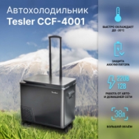 Автохолодильник TESLER CCF-4001 даже в жаркое время года сохраняет продукты свежими во время путешествия, при поездке на дачу или пикник. Оборудован компрессором, поэтому температура охлаждения не зависит от степени наполненности и от температуры окружающей среды. После достижения заданной температуры автоматически переключается из режима охлаждения в режим энергосбережения. Сенсорная панель управления позволяет регулировать температуру в диапазоне от -20℃ до 20℃ (при температуре окружающей среды 25°C). Выбранная температура отображается на дисплее.