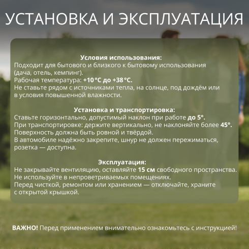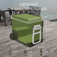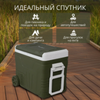 Для комфорта в использовании предусмотрены телескопическая ручка, крупные транспортировочные колёса, светодиодная подсветка и сливное отверстие для конденсата. Благодаря продуманной конструкции холодильник легко перемещается по неровным поверхностям. Возможность смены направления открывания крышки позволяет адаптировать его под любое пространство будь то багажник автомобиля, кемпинг или уголок в загородном доме.