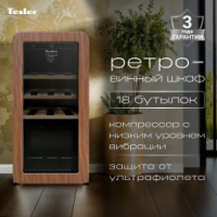 Представляем вашему вниманию уникальный винный шкаф, который станет настоящим украшением кухни или гостиной. Этот стильный и функциональный аксессуар сочетает в себе все преимущества современного винного холодильника и неповторимый ретродизайн, вдохновлённый стилем 60-х годов. Винный шкаф холодильник Tesler использует современные технологии для хранения вашей коллекции вина. Вместимость шкафа составляет 18 бутылок – оптимальное количество для домашнего использования или небольшого бара.