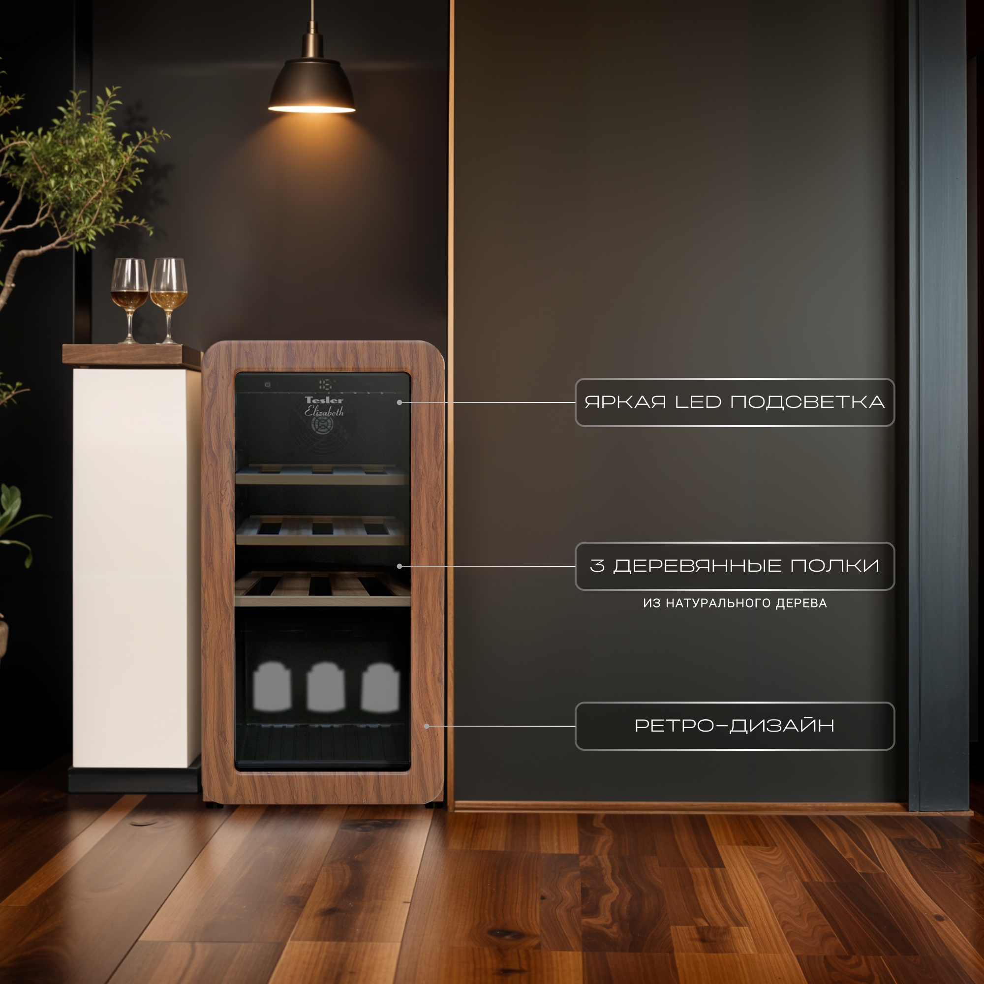 Такой винный шкаф станет стильным элементом интерьера и поможет создать атмосферу уюта и тепла. Благодаря элегантному дизайну винный шкаф Tesler легко впишется в интерьер городской квартиры, загородного дома или офиса, он станет отличным дополнением к вечеринкам и ужинам. Вы сможете легко и быстро выбрать подходящее вино для каждого гостя, создавая неповторимую атмосферу праздника. Если вы предпочитаете сохранять вино для особых моментов или праздников, винный шкаф обеспечит идеальные условия для его хранения, позволяя наслаждаться вкусом вина даже спустя длительное время.