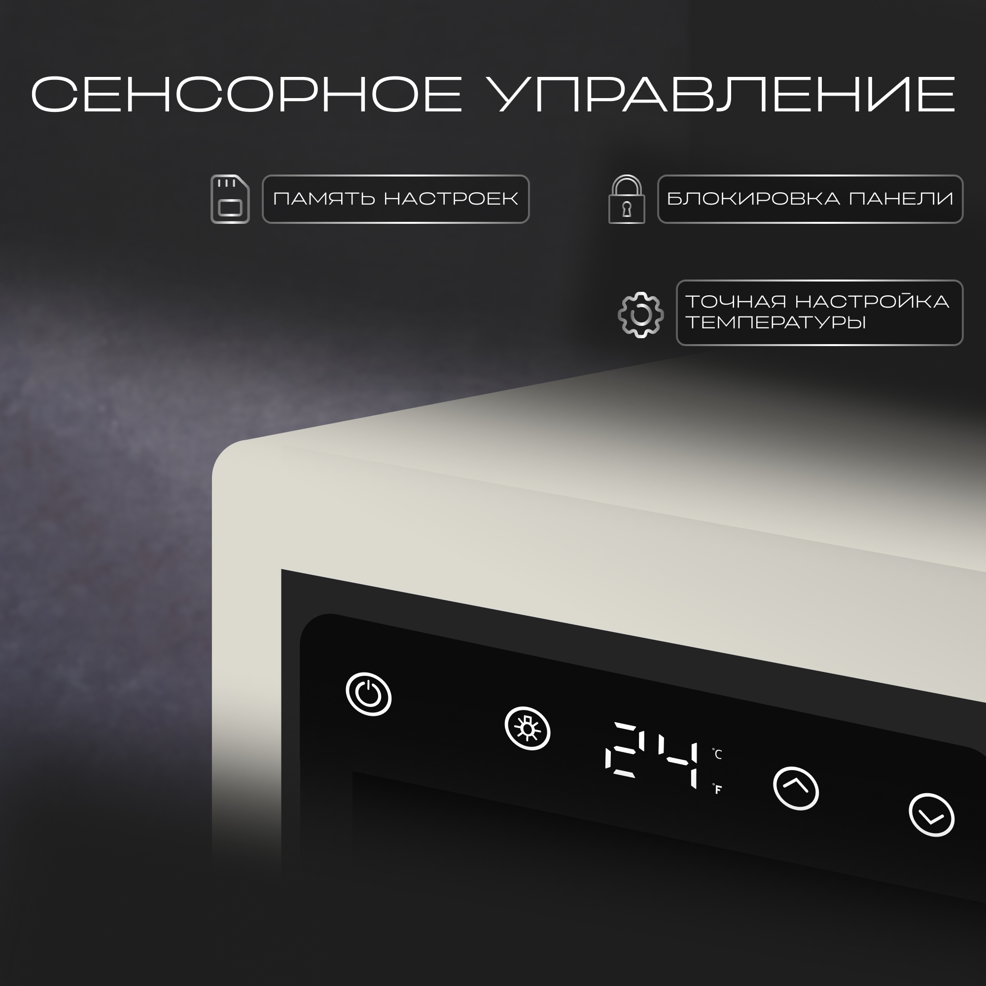 Устройство оснащено LED дисплеем и удобным сенсорным управлением. Функция блокировки панели управления обеспечивает защиту настроек и дополнительную безопасность.