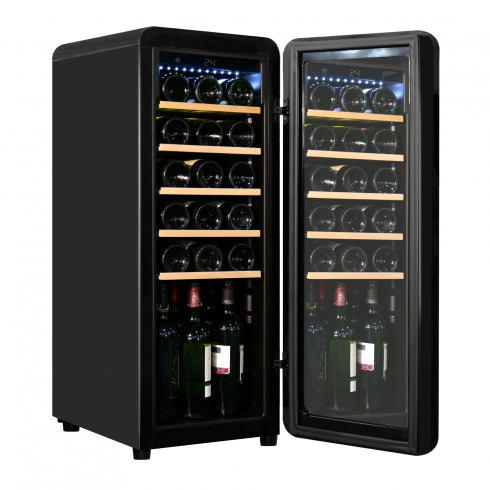 Преимуществом системы охлаждения данной модели является наличие компрессора, который использует хладагент для охлаждения внутреннего пространства, что обеспечивает стабильное поддержание температуры. Динамическая система охлаждения равномерно распределяет холод, что позволяет избежать застаивания запахов, и поддерживает постоянный уровень влажности. Температура внутри шкафа не зависит от температуры окружающей среды. Диапазон поддерживаемой температуры от 5 °C до 20°C помогает создать идеальные условия для хранения вина.