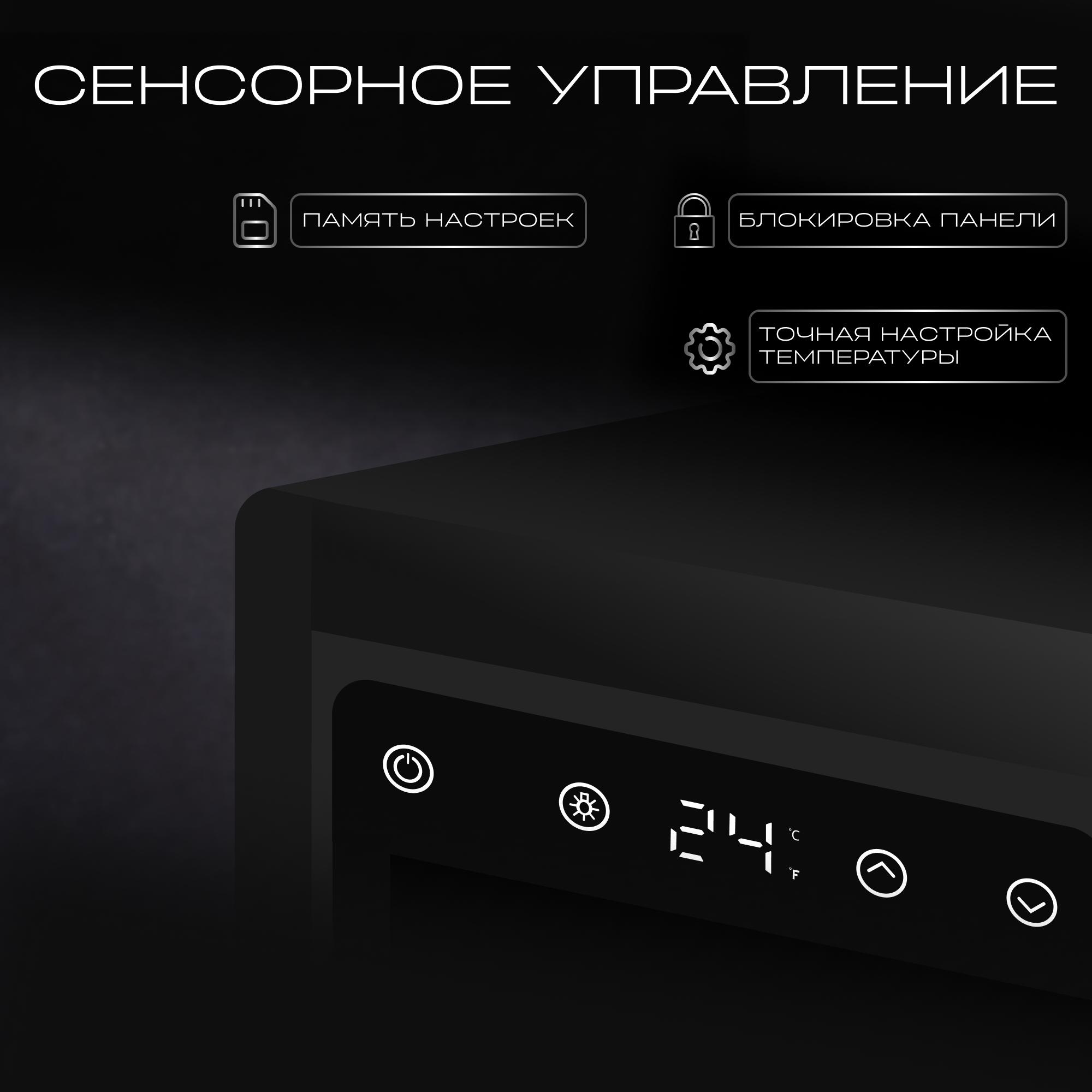 Устройство оснащено LED дисплеем и удобным сенсорным управлением. Функция блокировки панели управления обеспечивает защиту настроек и дополнительную безопасность.