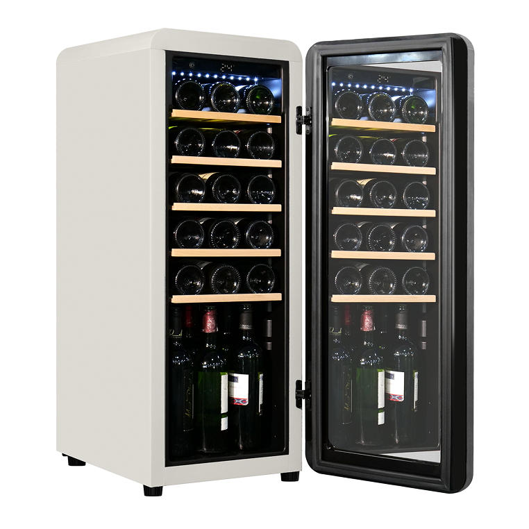 Преимуществом системы охлаждения данной модели является наличие компрессора, который использует хладагент для охлаждения внутреннего пространства, что обеспечивает стабильное поддержание температуры. Динамическая система охлаждения равномерно распределяет холод, что позволяет избежать застаивания запахов, и поддерживает постоянный уровень влажности. Температура внутри шкафа не зависит от температуры окружающей среды. Диапазон поддерживаемой температуры от 5 °C до 20°C помогает создать идеальные условия для хранения вина.