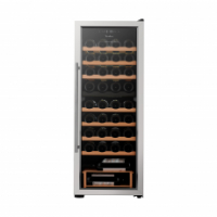 Преимуществом данной модели является наличие компрессора, который использует хладагент для охлаждения внутреннего пространства, что обеспечивает стабильное поддержание температуры. Динамическая система охлаждения равномерно распределяет холод, что позволяет избежать застаивания запахов, и поддерживает ровный уровень влажности. Температура внутри шкафа не зависит от температуры окружающей среды. Диапазон поддерживаемой температуры от 5 °C до 18°C помогает создать идеальные условия для хранения вина. 2 температурных зоны (16+20 бутылок) позволяют настроить разную температуру в каждом отделении, чтобы размещать внутри разные сорта вин.