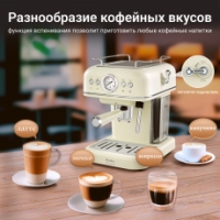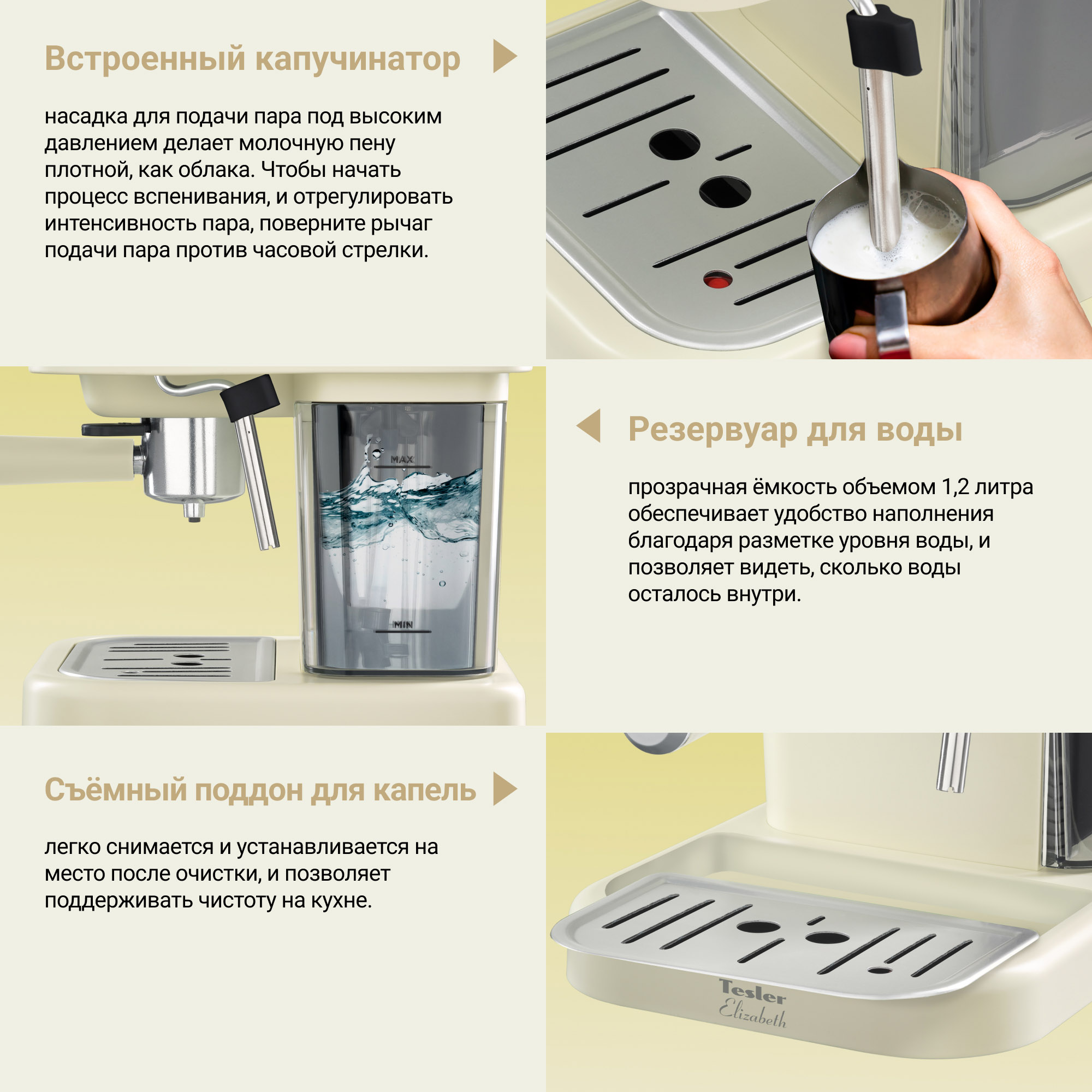 Кофеварка Tesler ECM-245 подарит вам возможность наслаждаться каждой каплей вашего любимого напитка, и будет радовать вас и ваших близких каждый день. Модель выпускается в бежевом, песочно-сером и зелёном цветах.