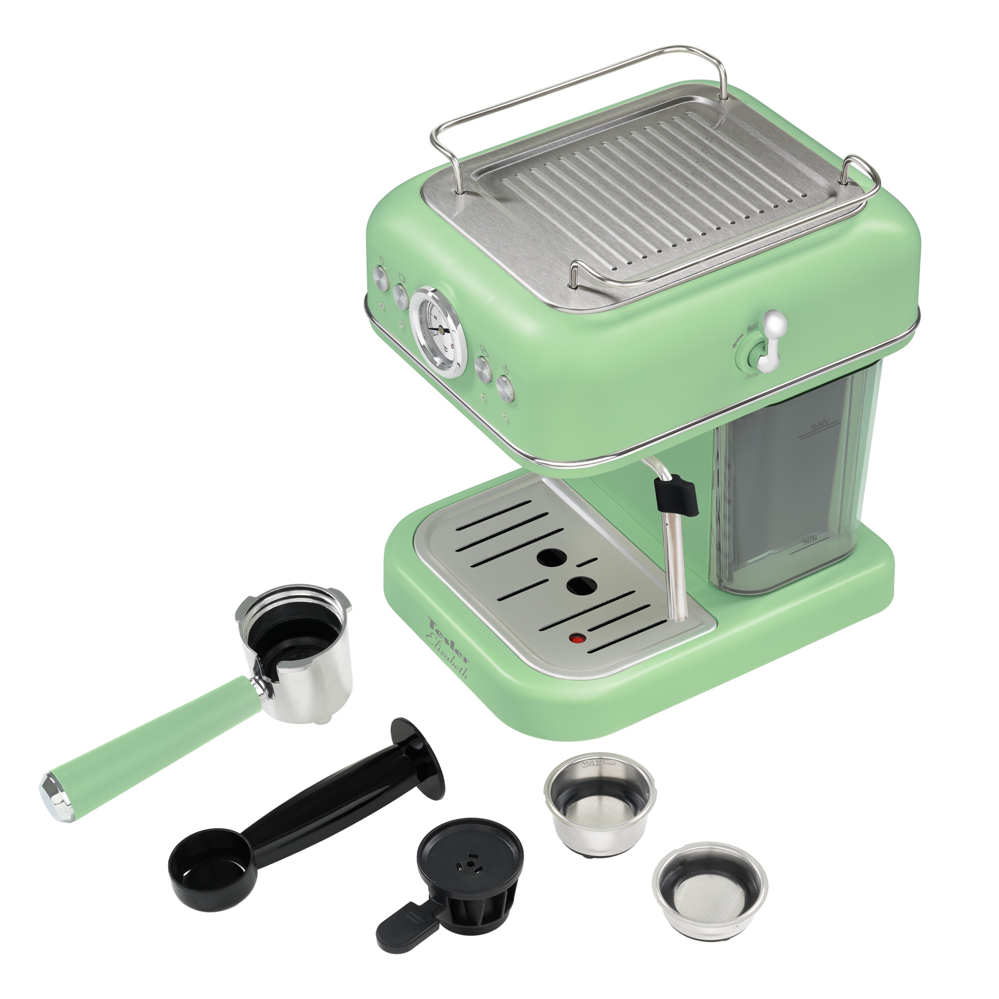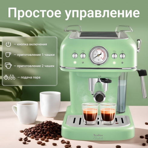 Рожковая кофеварка Tesler ECM-245 - часть серии Elizabeth. Техника Elizabeth не останется незамеченной на вашей кухне: каждый прибор выполнен в винтажном стиле, и сочетает в себе высокие технологии с интуитивно понятным управлением. Комплект также включает в себя тостер TT-245 на 2 слота, тостер ТТ-445 на 4 слота, чайник объёмом 1,7 л и микроволновую печь.
