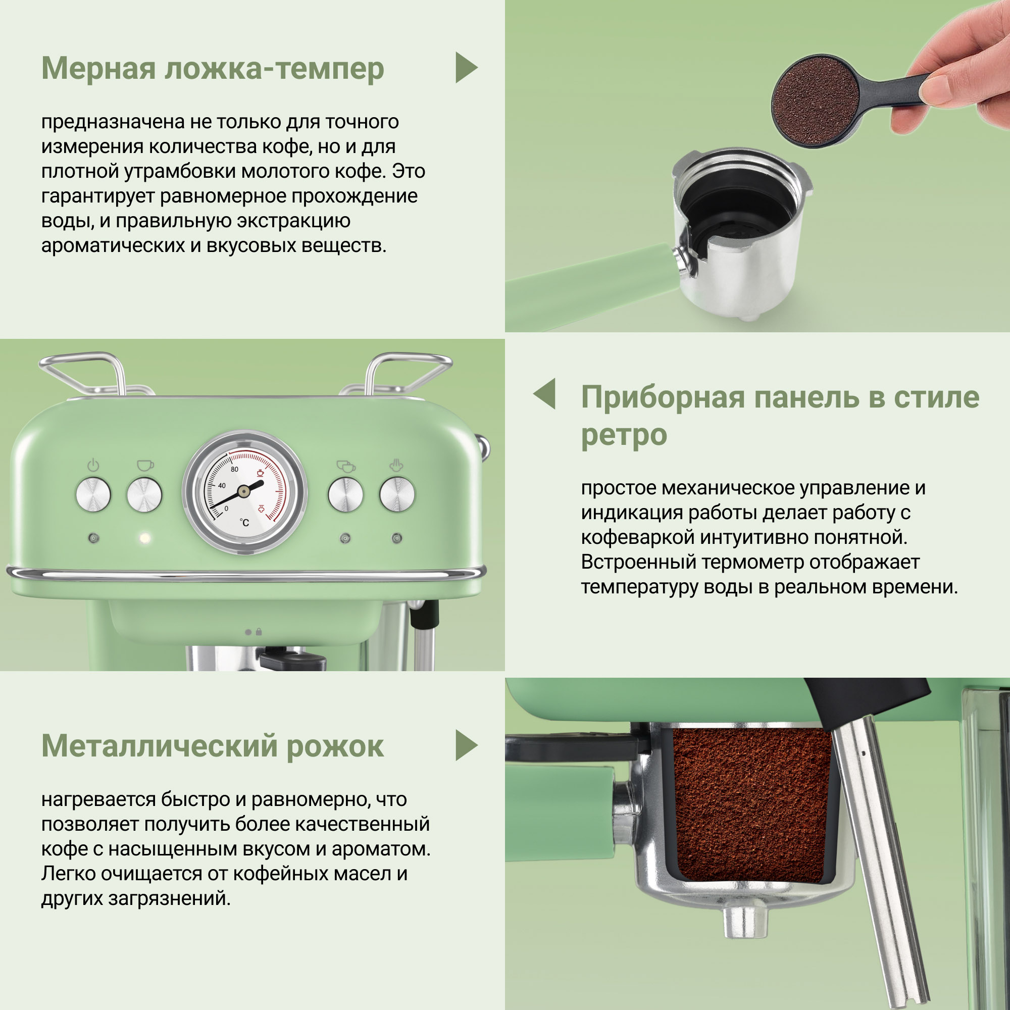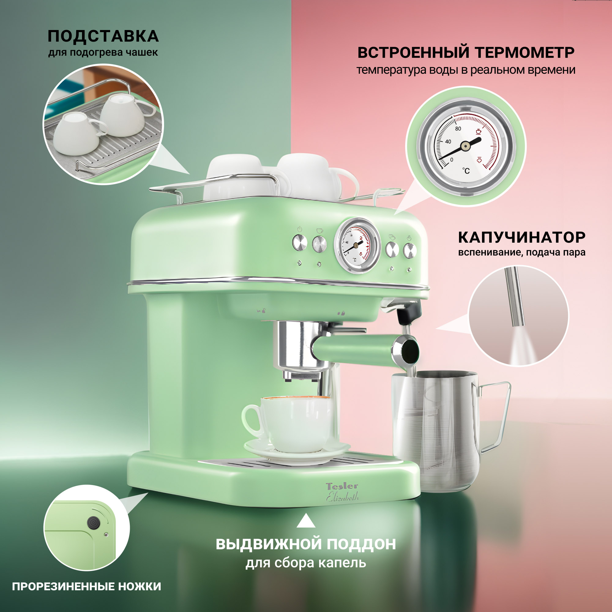 Кофеварка Tesler ECM-245 подарит вам возможность наслаждаться каждой каплей вашего любимого напитка, и будет радовать вас и ваших близких каждый день. Модель выпускается в бежевом, песочно-сером и зелёном цветах.