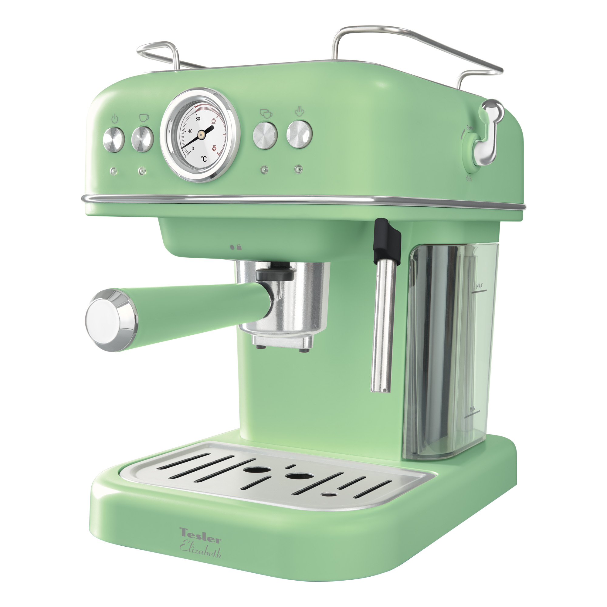 Рожковая кофеварка Tesler ECM-245 - часть серии Elizabeth. Техника Elizabeth не останется незамеченной на вашей кухне: каждый прибор выполнен в винтажном стиле, и сочетает в себе высокие технологии с интуитивно понятным управлением. Комплект также включает в себя тостер TT-245 на 2 слота, тостер ТТ-445 на 4 слота, чайник объёмом 1,7 л и микроволновую печь.