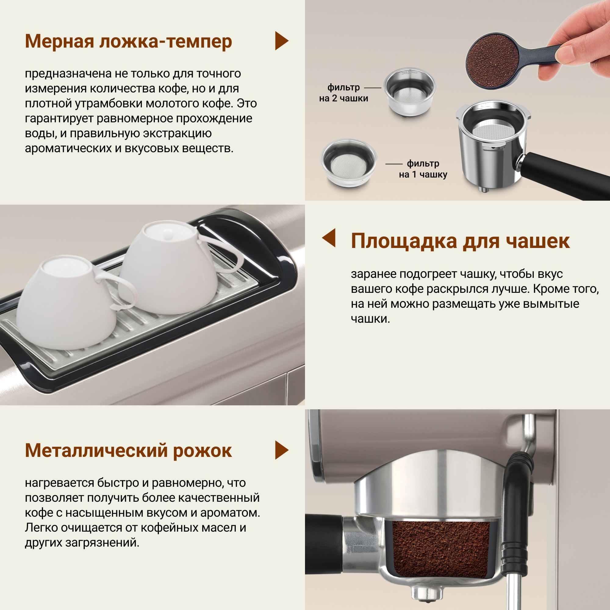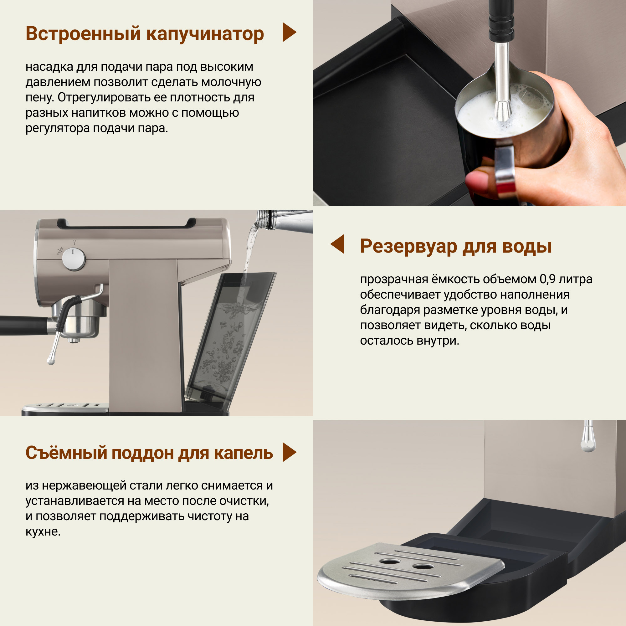 С Tesler ECM-260 вы сможете наслаждаться каждой каплей вашего любимого кофе, и создавать разнообразные кофейные напитки, которые удовлетворят даже самых требовательных ценителей кофе. Модель выпускается в бежевом, красном и сером цветах.