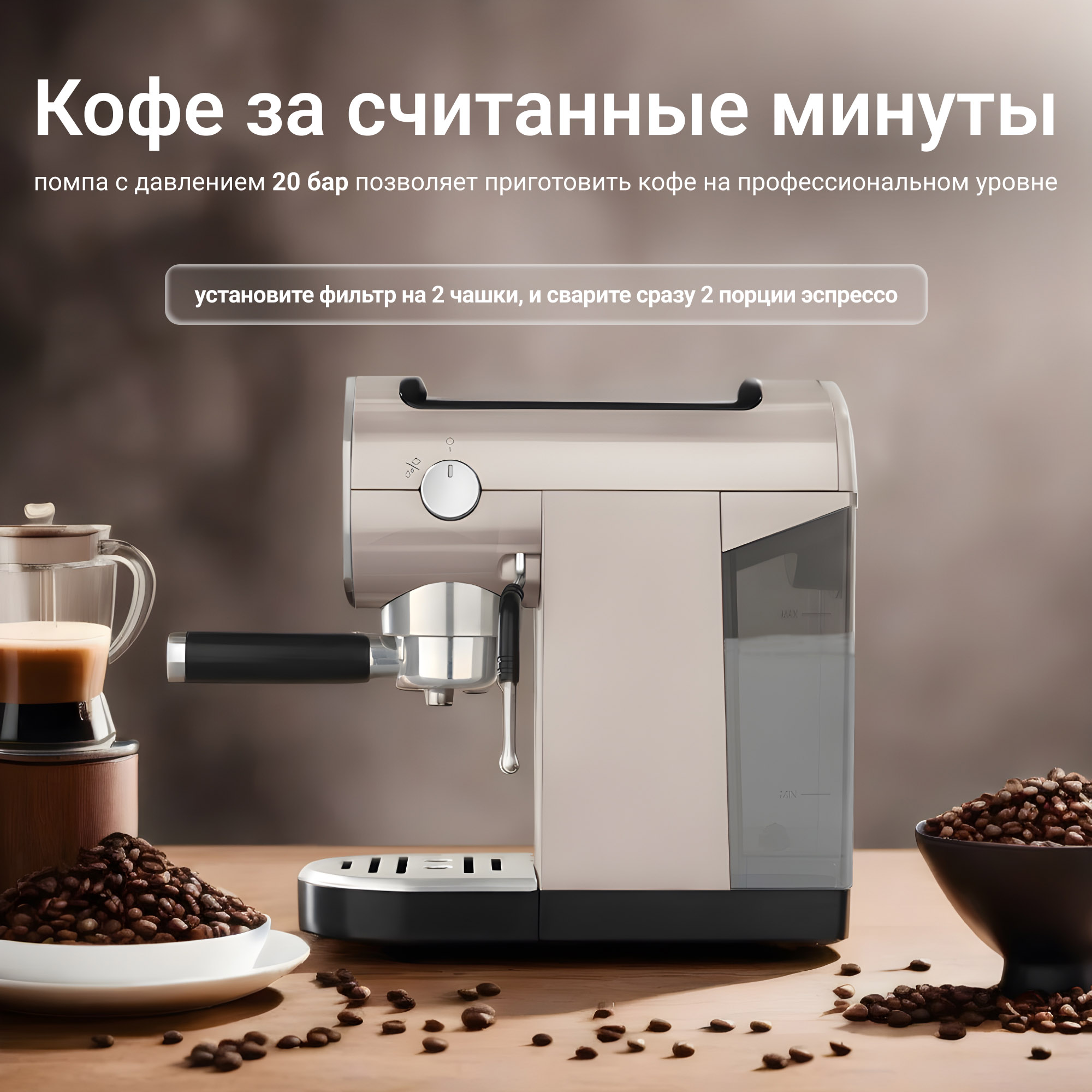 Мощность кофеварки составляет 1360 Вт, а давление достигает 20 бар, что гарантирует насыщенный вкус и аромат каждой приготовленной чашки.