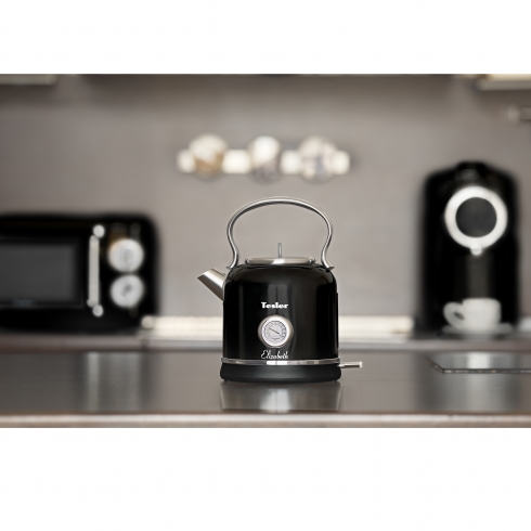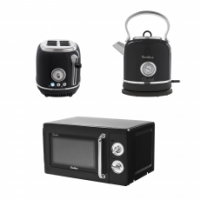 Модель Tesler Elizabeth KT-1745 доступна в следующих цветах корпуса: красный, бежевый, зеленый, оранжевый, серый, тёмно-синий и чёрный. В комплект кухонной техники Tesler Elizabeth входят 3 устройства: СВЧ-печь, чайник и тостер.