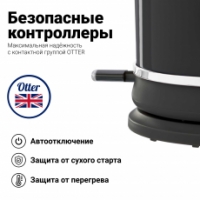 Оптимальные характеристики объёма и мощности, высокое качество сборки и материалов, а также привлекательный внешний вид выгодно выделяют электрический чайник Tesler Elizabeth KT-1745 среди прочих. На корпусе расположился небольшой термометр, который поможет вам точно контролировать температуру воды, а контактная группа Otter (Великобритания) гарантирует надежную работу и защиту от перегрева при "сухом старте". Благодаря трёхуровневой системе защиты контроллер просто не позволит чайнику перегреться.