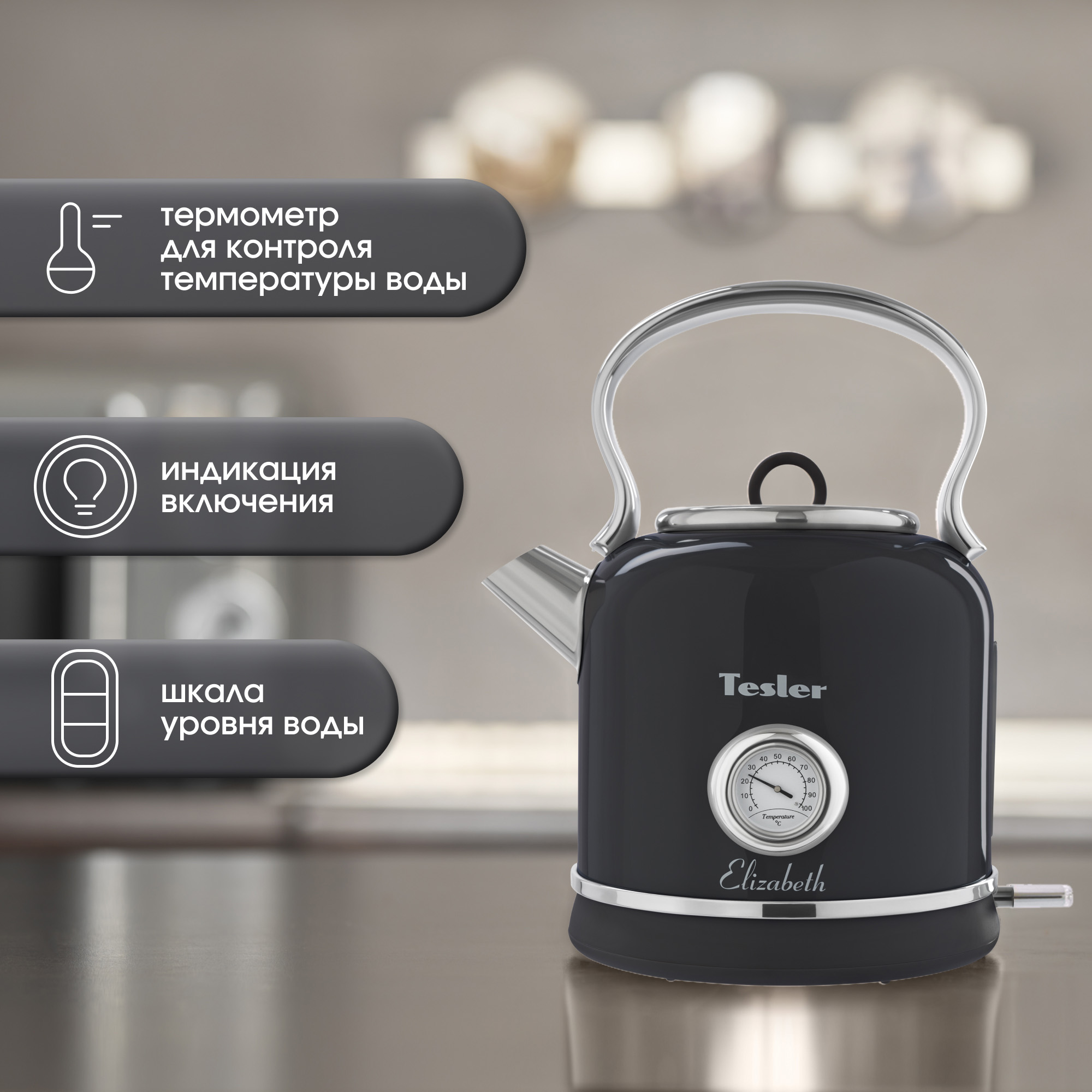Купить электрический чайник Tesler Elizabeth KT-1745 Вы можете через интернет в магазинах наших официальных партнёров.