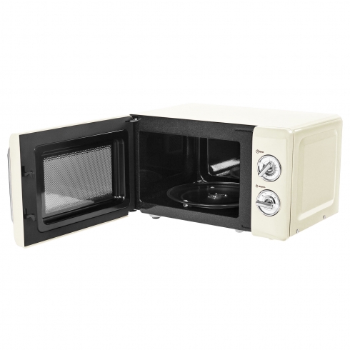 Микроволновая печь Tesler MM-2045 из серии Elizabeth – это простая и надёжная СВЧ, в которой предусмотрено несколько режимов мощности, таймер и система равномерного распределения микроволнового излучения. Вместительная (20 литров) при компактном размере, она легко впишется в интерьер вашей кухни и не займет много места. Корпус из высококачественной стали дополнен ручками установки таймера и мощности в стиле винтажных переключателей "реле".