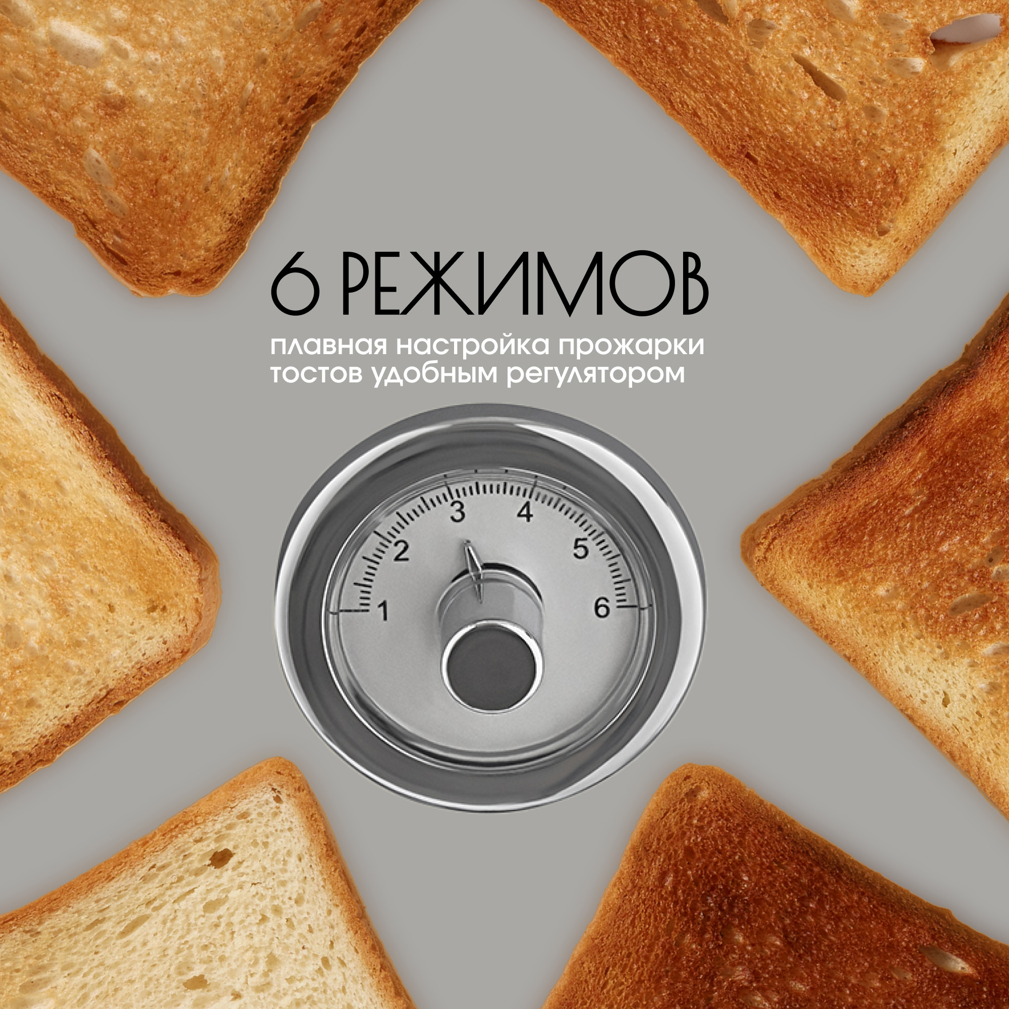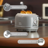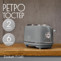 С чего начинают свой день большинство людей на земле? Конечно же со вкусных тостов на завтрак! Tesler Elizabeth TT-245 из линейки кухонных приборов Elizabeth поможет приготовить идеальные тосты. Тостер TT-245 быстро разогреет, поджарит или разморозит ломтики хлеба. От вас требуется только выбрать одну из 6 доступных степеней прожарки и опустить рычаг - всё остальное Elizabeth TT-245 сделает сам.