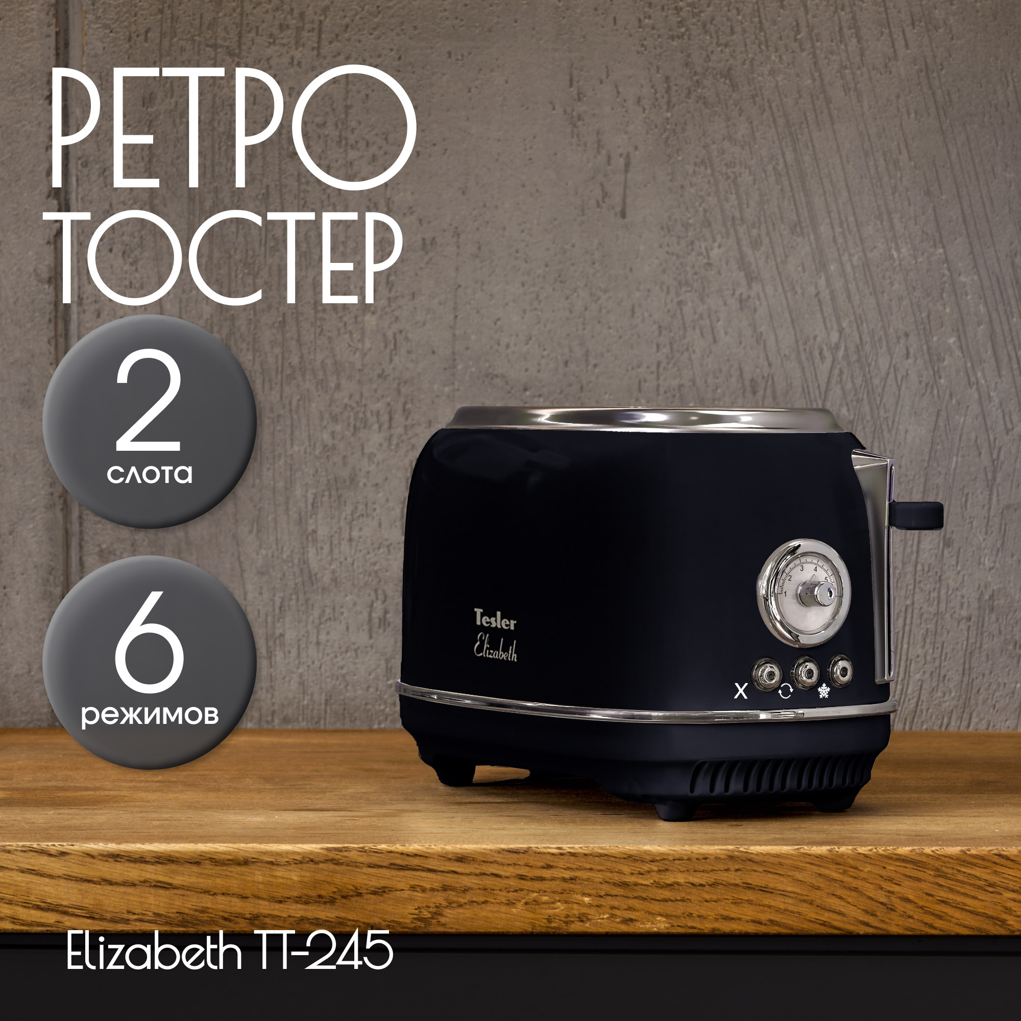 Тостер Tesler Elizabeth TT-245 из линейки кухонных приборов Elizabeth поможет приготовить идеальные тосты. Он быстро разогреет, поджарит или разморозит ломтики хлеба. От вас требуется только выбрать одну из 6 доступных степеней прожарки и опустить рычаг - всё остальное Elizabeth TT-245 сделает сам.