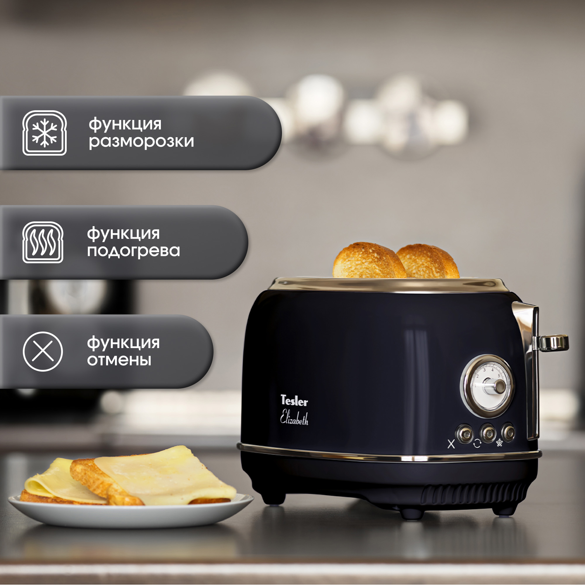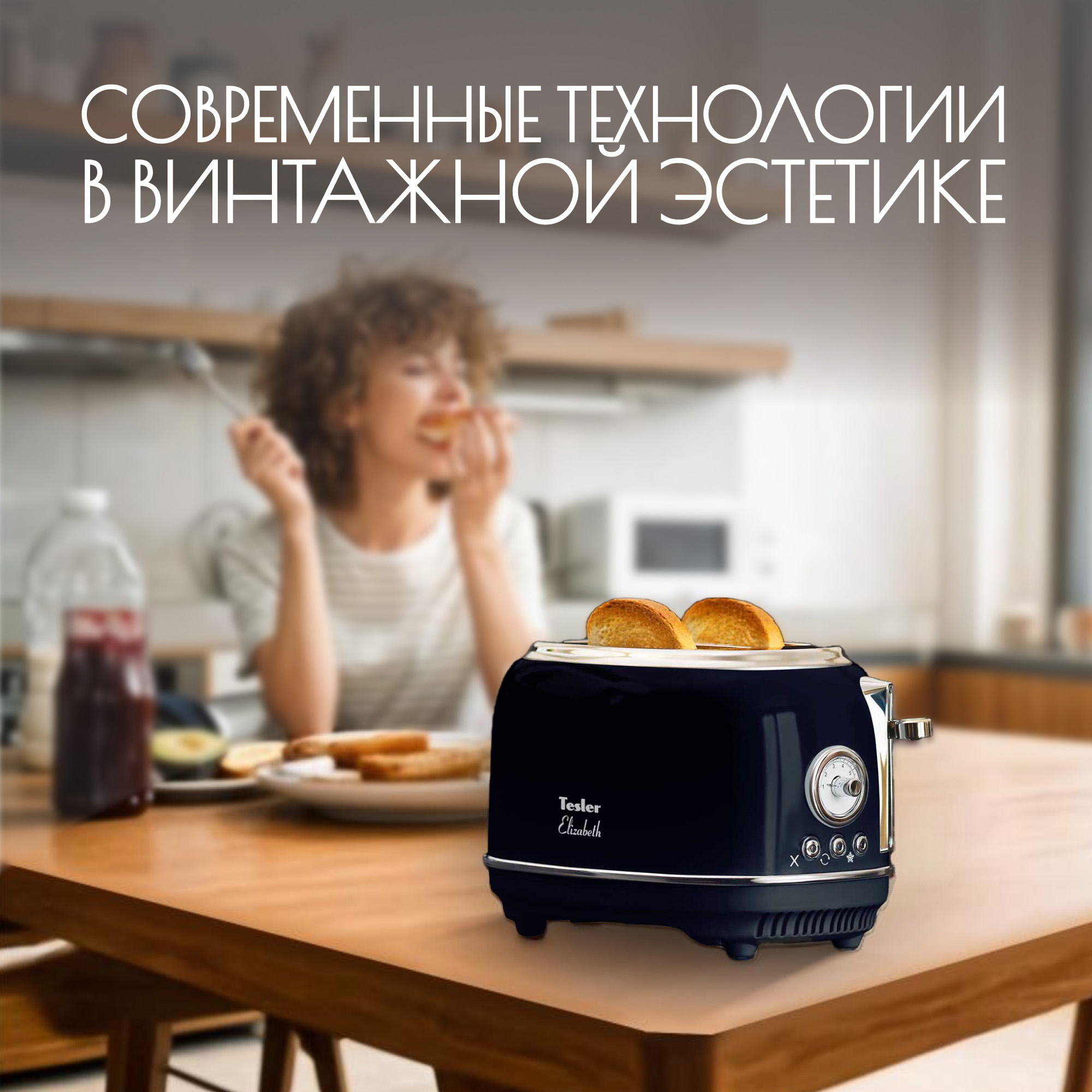 В комплект кухонной техники Tesler Elizabeth оттенка Midnight также входят чайник и тостер на 4 слота.