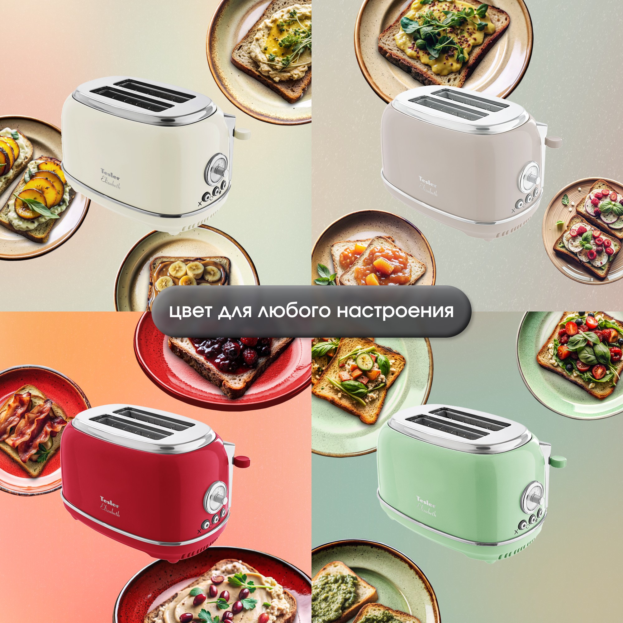 Модель Tesler Elizabeth TT-245 доступна в следующих цветах корпуса: красный, бежевый, зеленый, серый, тёмно-синий и песочно-серый.