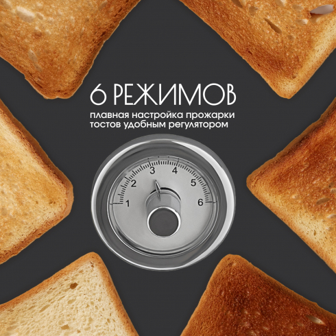 Если во время установки режима была допущена ошибка, то поможет функция отмены. Система центрирования автоматически располагает хлеб точно там, где это требуется, обеспечивая равномерную прожарку по всей поверхности. Поддон для крошек избавит вас от необходимости чистить тостер, достаточно вытряхнуть их в мусорное ведро.
