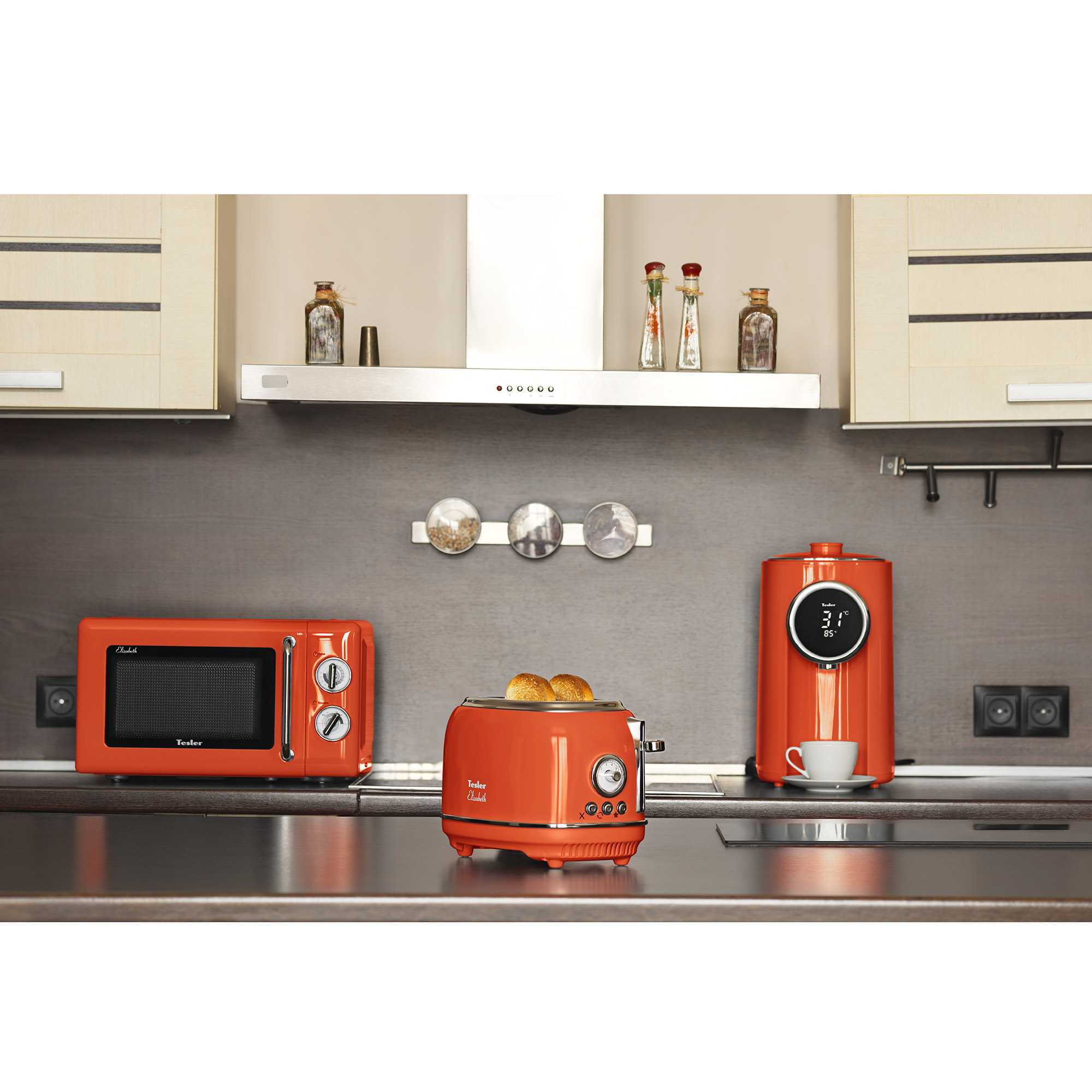 • В комплект кухонной техники Tesler Elizabeth входят 3 устройства: СВЧ-печь, чайник и тостер.