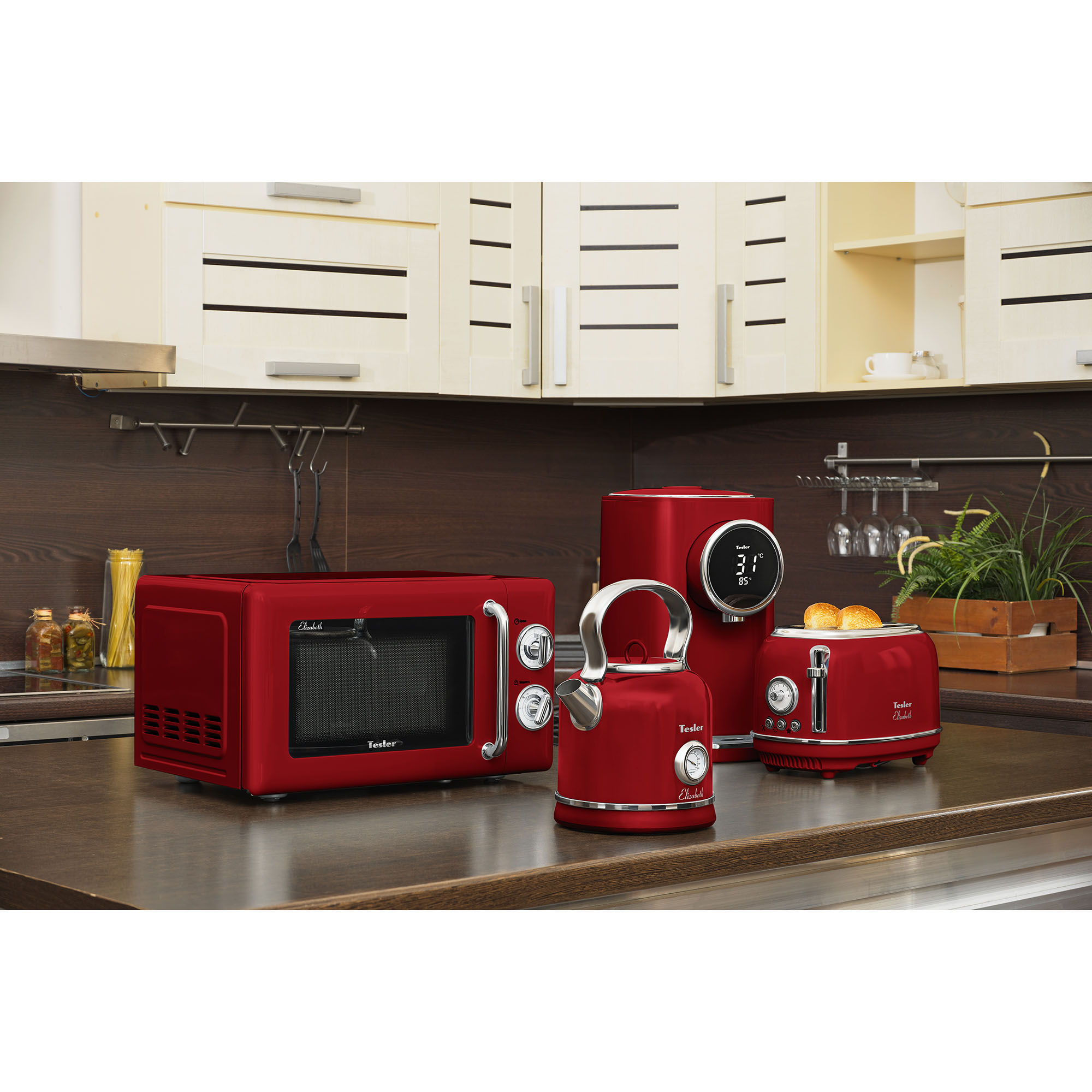 В комплект кухонной техники Tesler Elizabeth входят 3 устройства: СВЧ-печь, чайник и тостер.