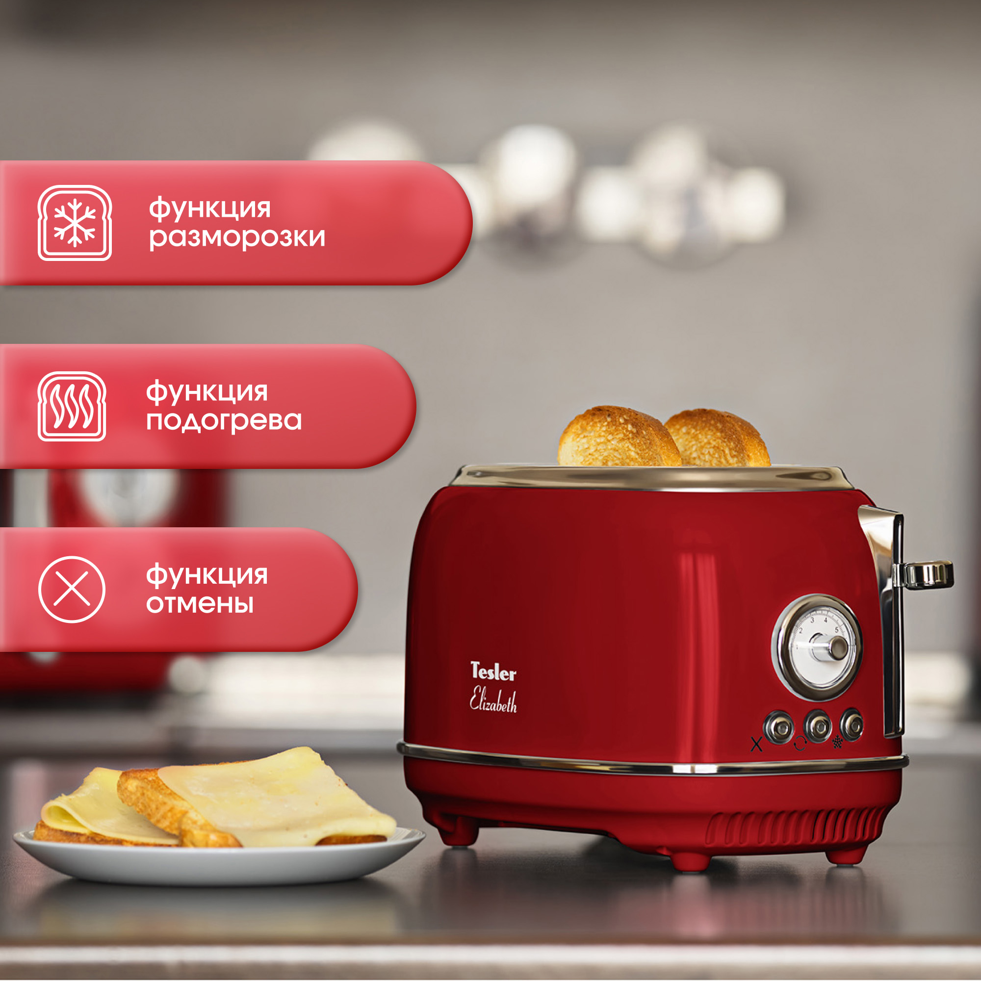 С чего начинают свой день большинство людей на земле? Конечно же со вкусных тостов на завтрак! Tesler Elizabeth TT-245 из линейки кухонных приборов Elizabeth поможет приготовить идеальные тосты. Тостер TT-245 быстро разогреет, поджарит или разморозит ломтики хлеба. От вас требуется только выбрать одну из 6 доступных степеней прожарки и опустить рычаг - всё остальное Elizabeth TT-245 сделает сам.