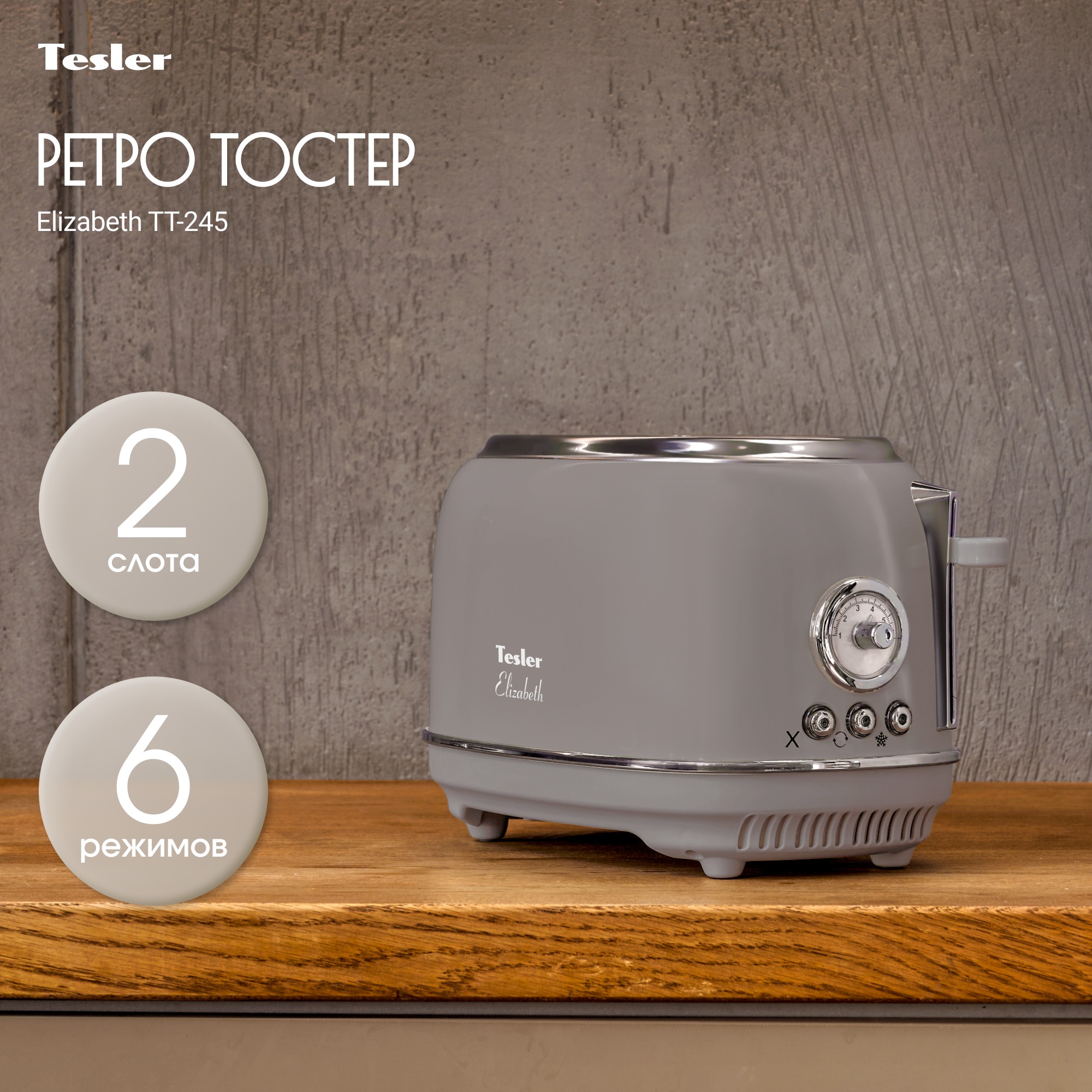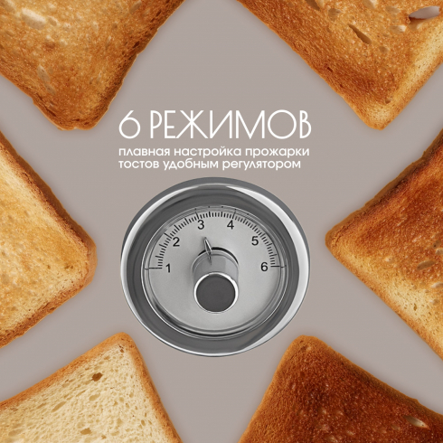 С чего начинают свой день большинство людей на земле? Конечно же со вкусных тостов на завтрак! Tesler Elizabeth TT-245 из линейки кухонных приборов Elizabeth поможет приготовить идеальные тосты. Тостер TT-245 быстро разогреет, поджарит или разморозит ломтики хлеба. От вас требуется только выбрать одну из 6 доступных степеней прожарки и опустить рычаг - всё остальное Elizabeth TT-245 сделает сам.