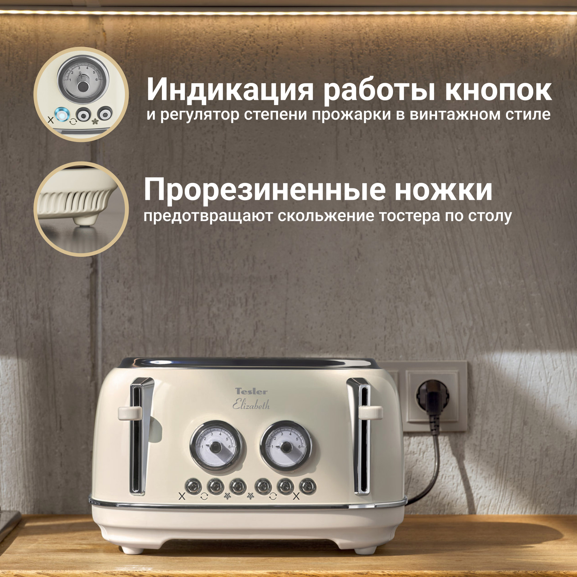 В случае перегрева тостер автоматически отключится, что защитит его от преждевременной поломки.