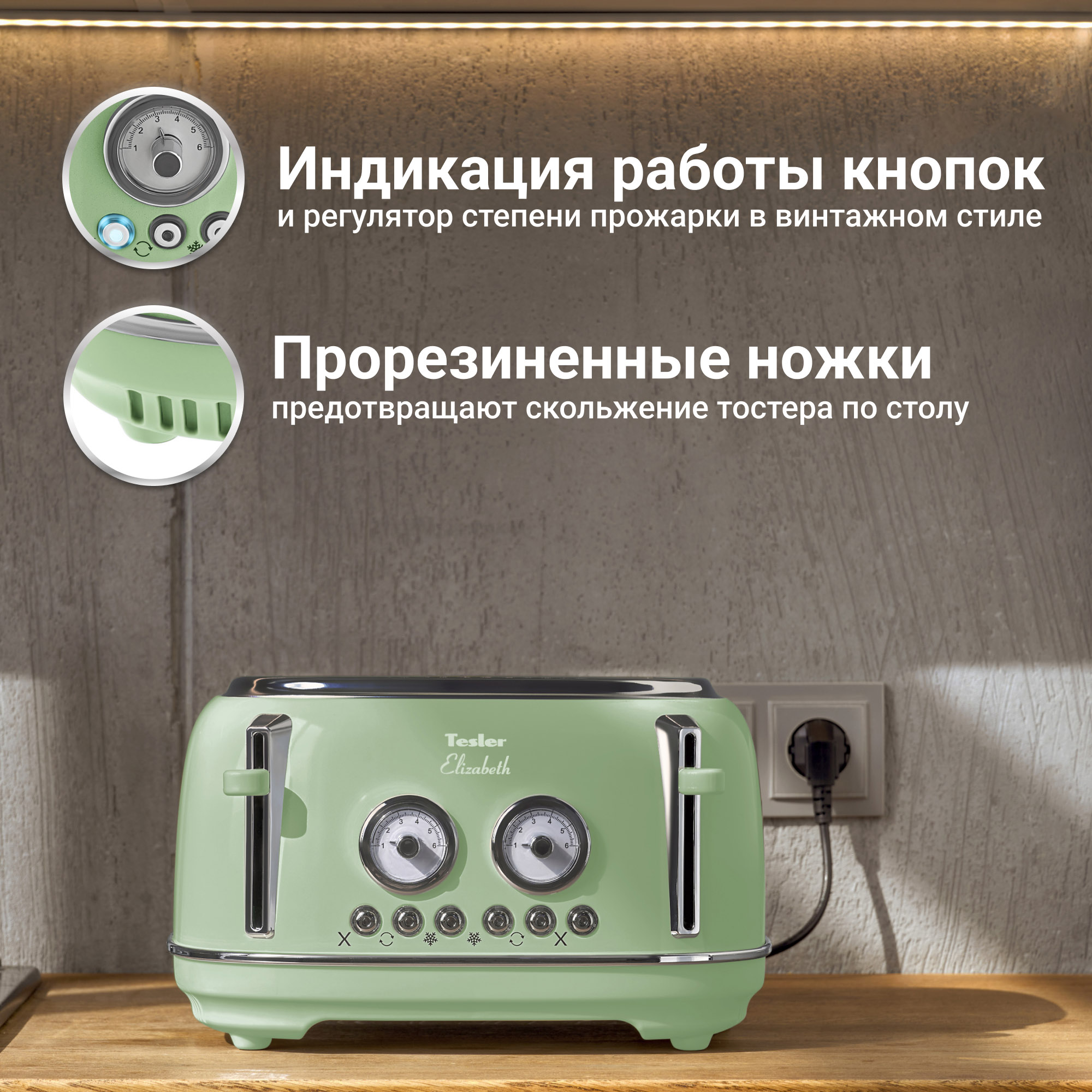В случае перегрева тостер автоматически отключится, что защитит его от преждевременной поломки.