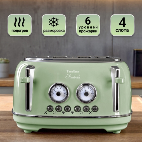 Тостер Tesler Elizabeth TT-445 на 4 слота поможет приготовить идеальные тосты на завтрак.