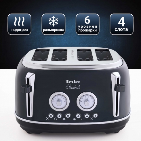 Тостер Tesler Elizabeth TT-445 на 4 слота поможет приготовить идеальные тосты на завтрак.