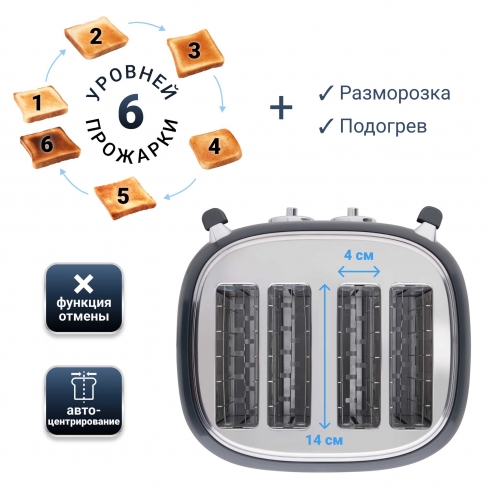 • Тостер имеет 4 слота.