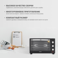 Благодаря объёму камеры в 30 литров печь занимает минимум места на кухне.