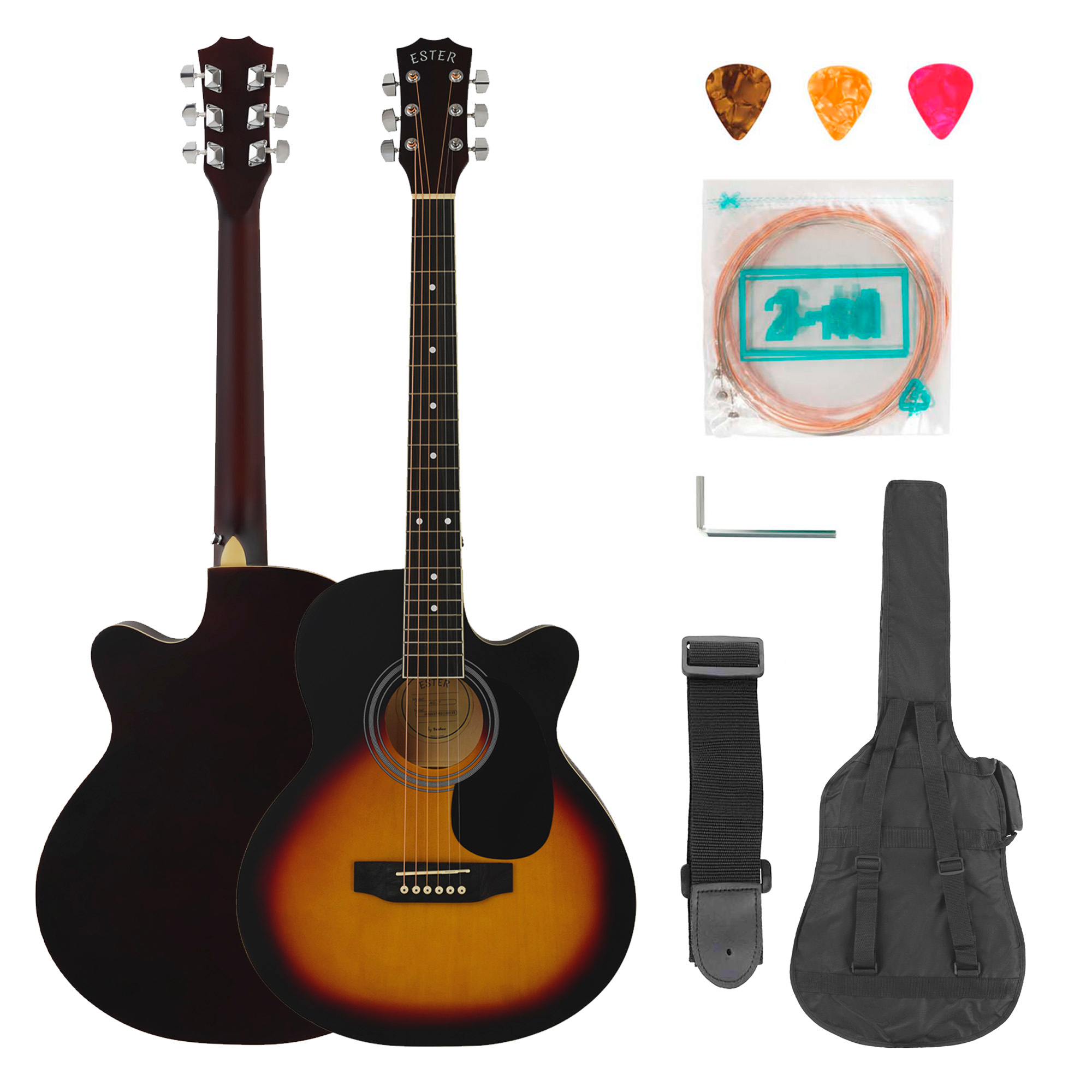 Tesler Ester AG-37 идеально подходит для обучающихся игре на гитаре. В комплекте есть всё необходимое, чтобы начать уроки сразу же после покупки: дополнительный комплект струн, три медиатора, наплечный ремень и мягкий чехол.