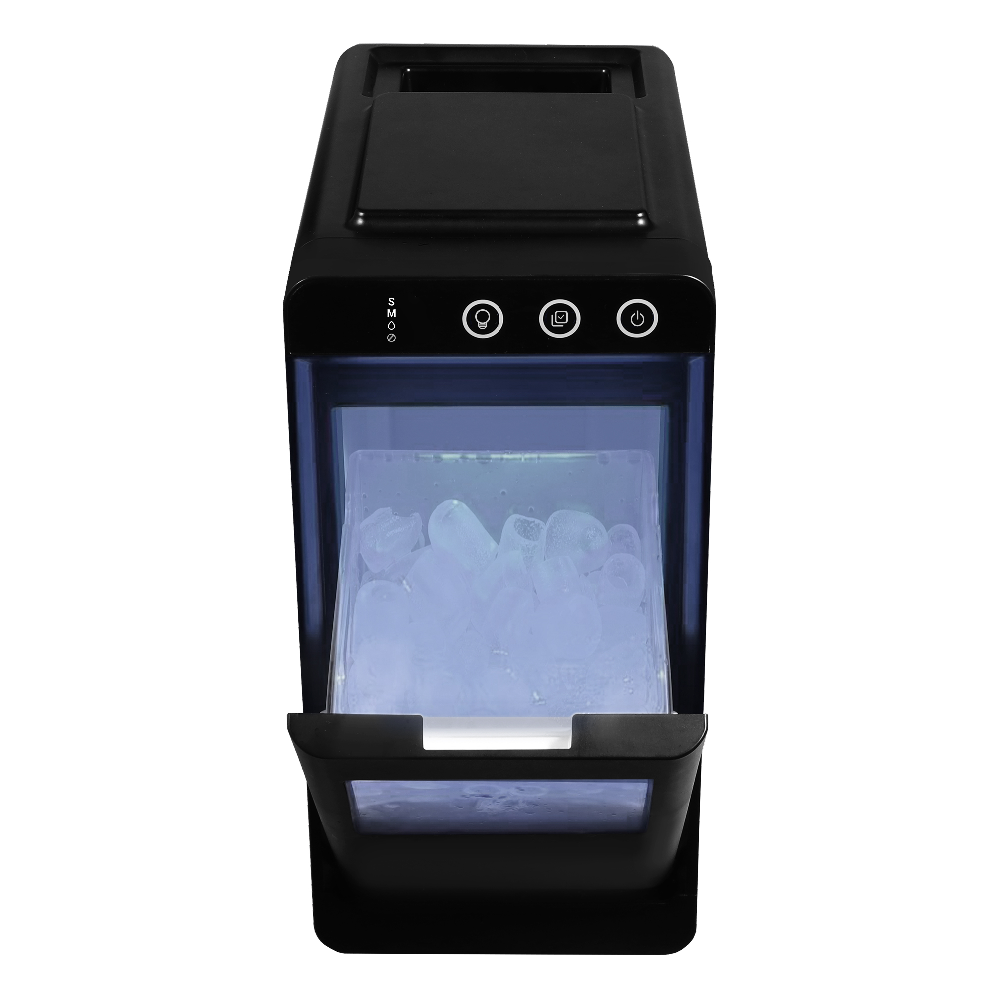 Эксплуатация не требует подключения к водопроводу: достаточно подключить устройство к электросети, наполнить резервуар водой и выбрать желаемый размер льда. При заполнении контейнера льдогенератор автоматически приостанавливает работу. Съёмная корзина для льда обеспечивает удобство извлечения и переноски.