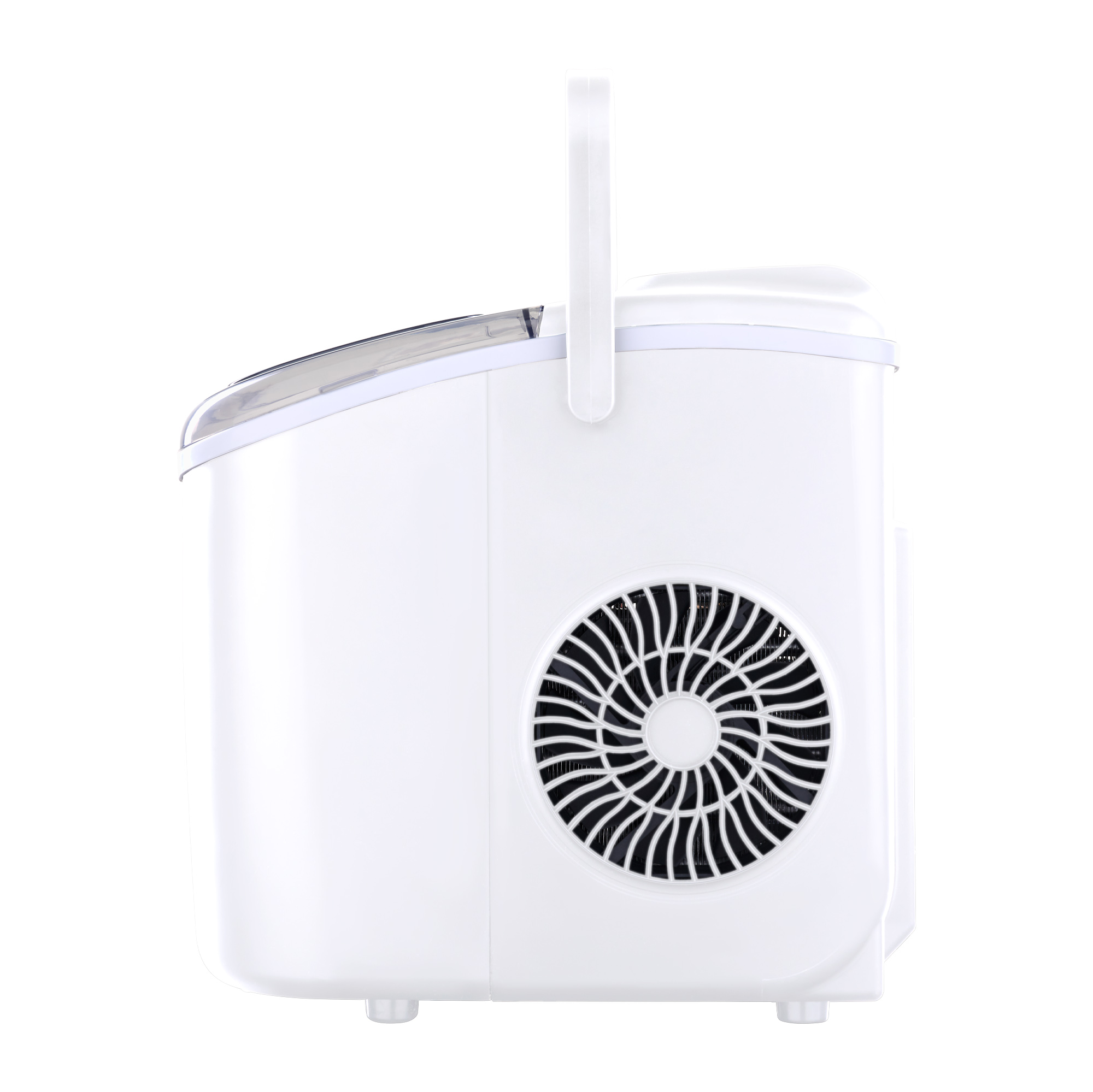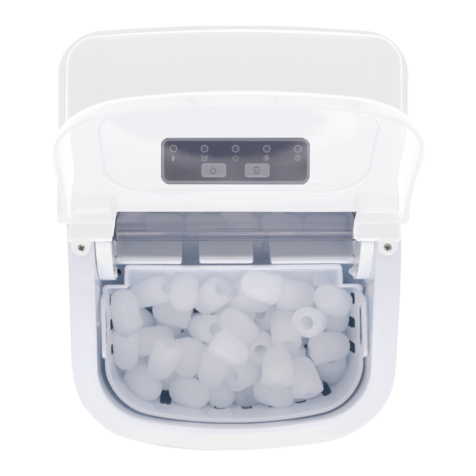 Генератор льда не требует подключения к водопроводу. Просто подключите устройство к сети, добавьте воду в резервуар, и выберите размер льда нажатием кнопки. Цикл приготовления льда длится от 6 до 13 минут, в зависимости от размера кубиков и исходной комнатной температуры. По окончании в корзине для льда окажется свежая порция. Льдогенератор останавливается автоматически, когда корзина для льда заполнена. Емкость для льда легко вынимается.