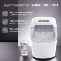 С портативным льдогенератором Tesler ICM-1201 можно быстро приготовить лёд для любых целей. В отличии от холодильника, в морозильной камере которого лёд замерзает более двух часов, это устройство способно заморозить воду в считанные минуты.