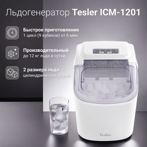 Благодаря льдогенератору Tesler ICM-1201 приготовить освежающие коктейли, смузи и фраппучино теперь не составит труда!
