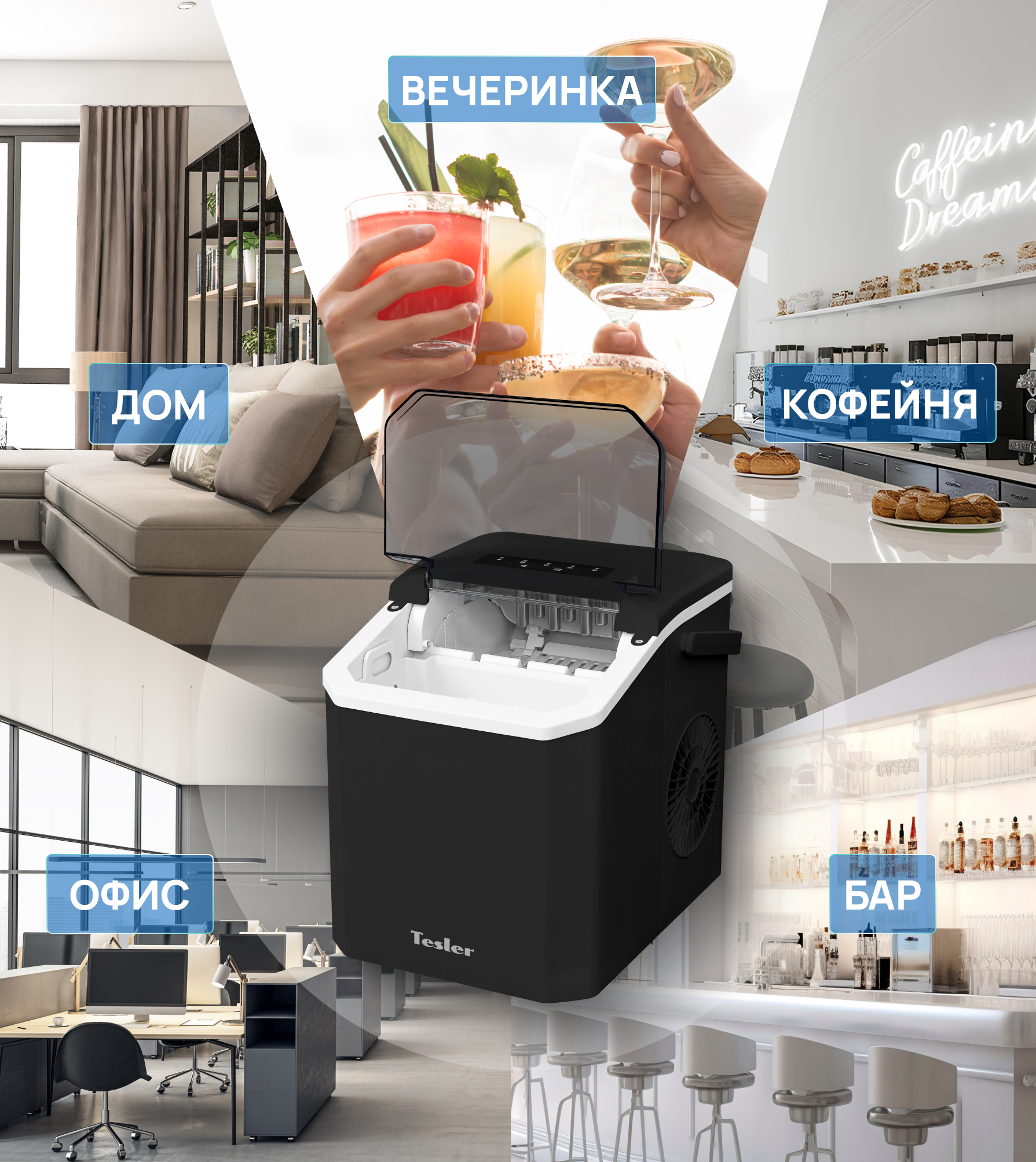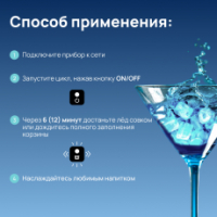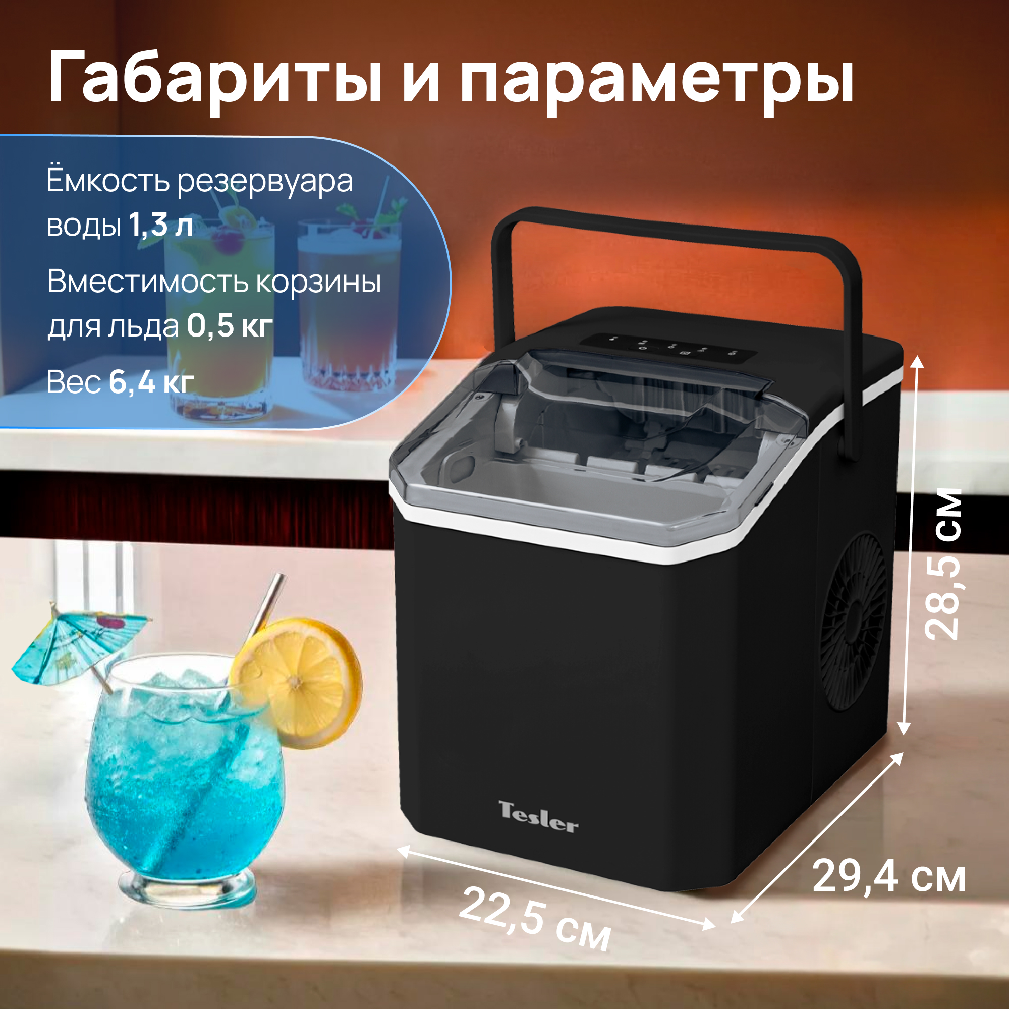 С портативным льдогенератором Tesler ICM-1203 можно быстро приготовить лед для любых целей. В отличие от морозильной камеры холодильника, где заморозка воды занимает несколько часов, это устройство способно приготовить прозрачный пальчиковый лед двух размеров всего за 6-12 минут.