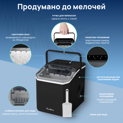 С Tesler ICM-1203 коктейли, лимонады и другие напитки останутся прохладными еще дольше, а их приготовление станет проще и удобнее!