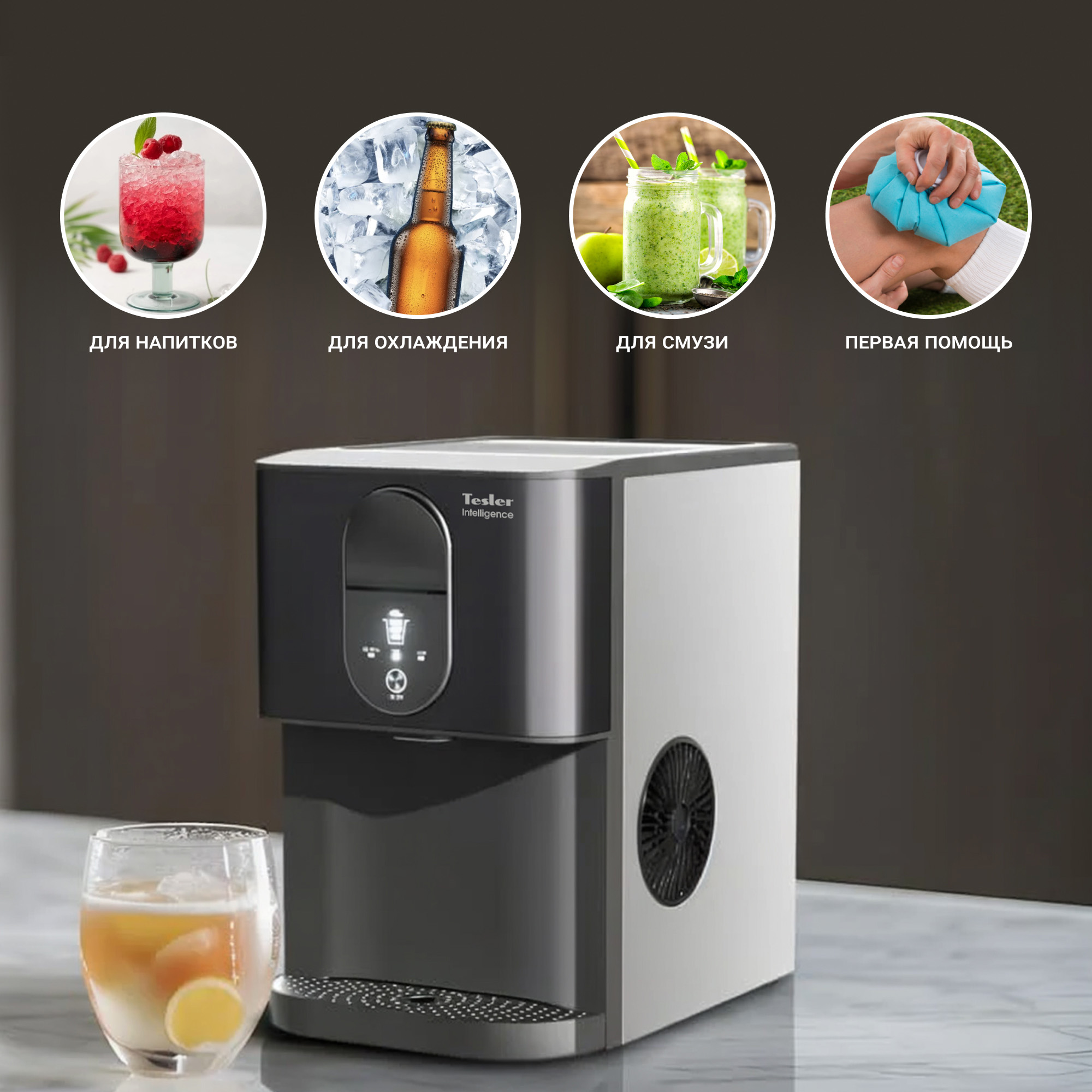 Льдогенератор Tesler ICM-2003 делает кусковой лёд, который предлагает ряд преимуществ по сравнению с кубиковым и цилиндрическим. Во-первых, он обладает мягкой текстурой, позволяя использовать его для приготовления коктейлей в шейкере или блендере. Кроме того, благодаря своей форме и размеру он быстрее охлаждает напитки.