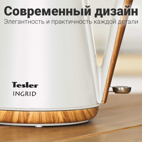 Электрочайник Tesler INGRID KT-1740 предлагает пользователю бескомпромиссное качество, долговечность и безопасность. Комбинация высококачественных материалов – нержавеющая сталь и декоративный пластик "под дерево" – особо подчёркивает выразительный внешний вид. Основательность во всём – это Tesler INGRID.