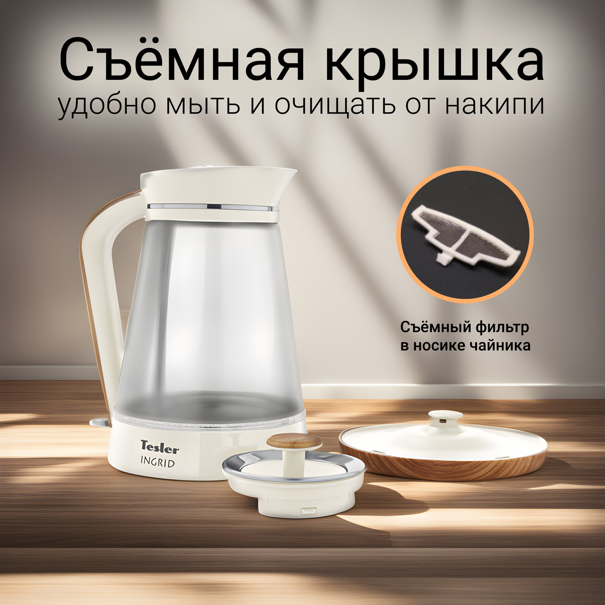 Электрочайник Tesler KT-1750 является частью коллекции INGRID, которая черпает вдохновение из скандинавского стиля, воплощая идею домашнего комфорта минималистичностью форм и спокойной цветовой гаммой.